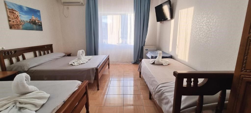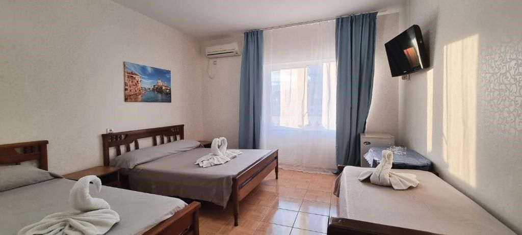 Комфортабельный однокомнатный номер _____________________________________________________ В номере: 1 двуспальная и 2 односпальная кровати, прикроватные тумбочки, шкаф-купе с зеркалом, стол, стулья, ЖК-телевизор, холодильник, кондиционер, балкон или терраса. ______________________________________________________ В ванной: душевая кабина, туалет, раковина, набор полотенец, средства личной гигиены.Услуги и удобства
