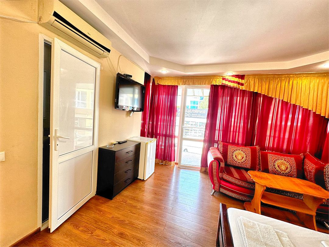 Комфортабельный однокомнатный номер с большим патио и балконом _____________________________________________________ В номере: 1 двуспальная и 1 односпальная кровати, прикроватные тумбочки, шкаф-купе с зеркалом, стол, стулья, ЖК-телевизор, холодильник, кондиционер, балкон или терраса. ______________________________________________________ В ванной: душевая кабина, туалет, раковина, набор полотенец, средства личной гигиены.Услуги и удобства