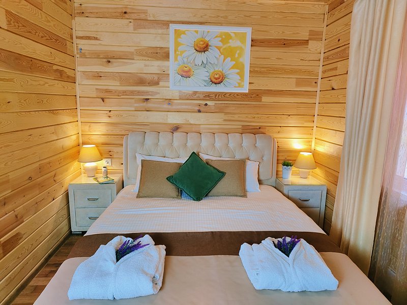 Просторные двухкомнатные апартаменты с кухней и отдельным входом, а также собственной парковкой. Номер предлагает непревзойденный вид на величественные горы и сад.