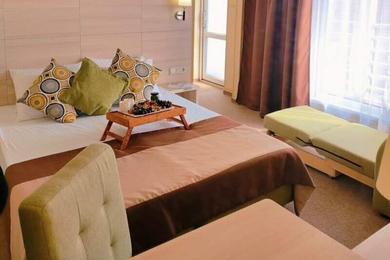 Путешествие с семьейПрекрасный отель для отдыха от городской суеты.Очень живописное место,вокруг горы,лес тишина и покой.Отдыхали с мужем в прошлом году летом в этом году забронировали на сентябрь.Очень понравился бассейн с видом на горы и то что есть трансфер до моря,так как от моря далековато.В номерах чистота,порядок уборка была вовремя.Территория довольно большая,завтракать на небольшой террасе с такими видами было одно удовольствие.
