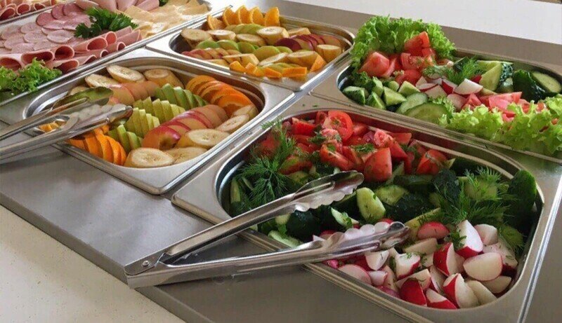 Читать полностьюВ отеле предоставляется три основных и два промежуточных приемов пищи по системе «Шведский стол», а также поздний приём пищи «Ночной суп». Разнообразное меню включает фрукты, овощи, выпечку, горячие блюда, салаты и гарниры. Во время промежуточных приемов пищи гости могут насладиться ватой, мороженым или поп-корном, которые также включены в стоимость питания.