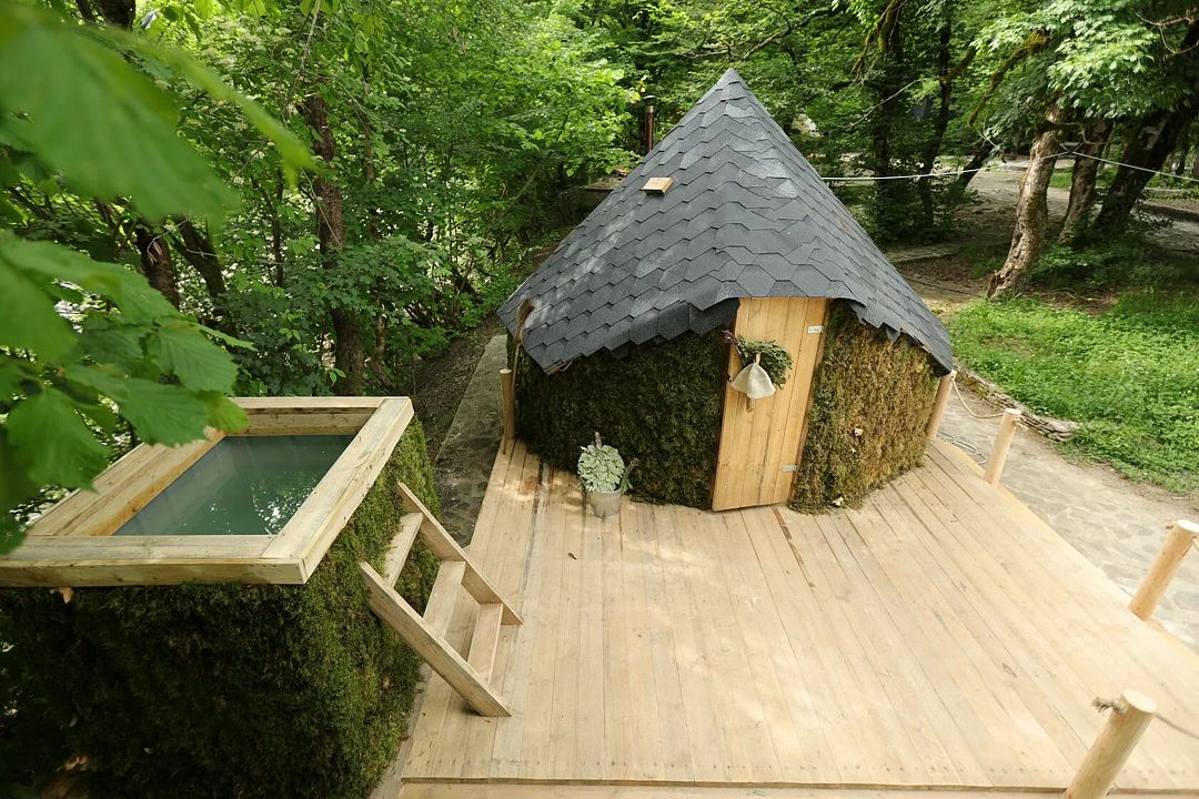 - расположение в чистом колхидском лесу рядом с горной рекой;