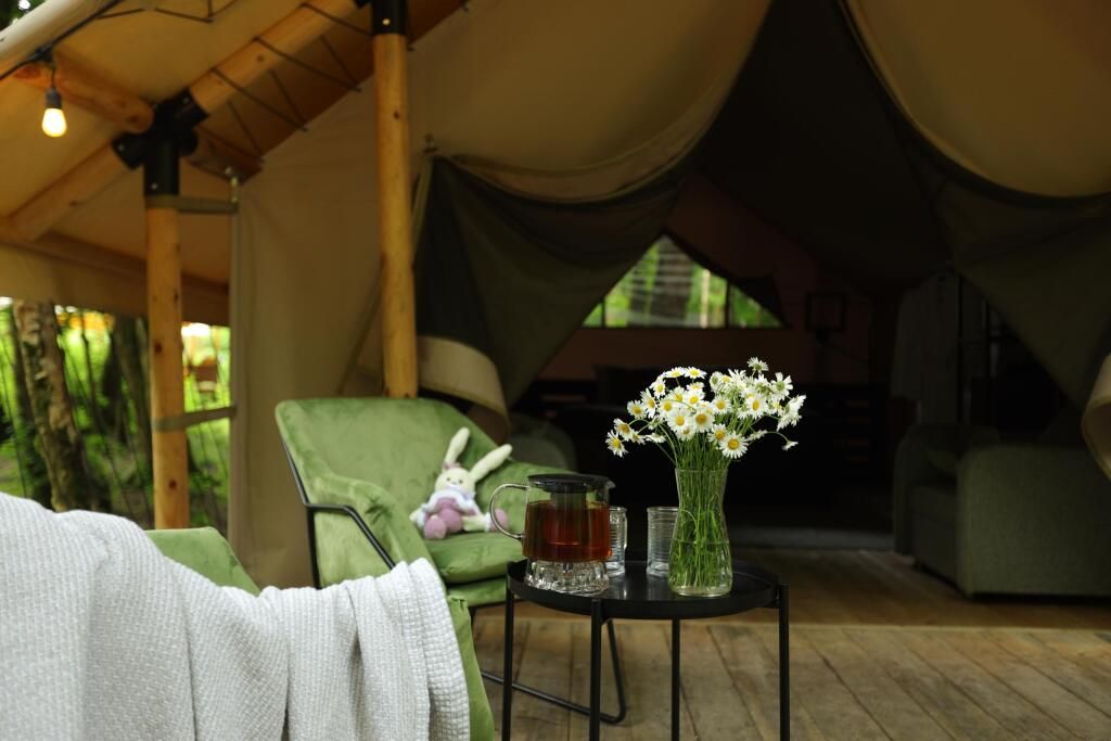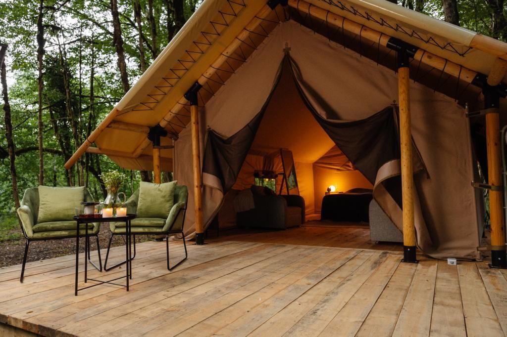 Изысканная палатка в стиле сафари обеспечивает особую связь с природой на фоне безупречной элегантности и комфорта.