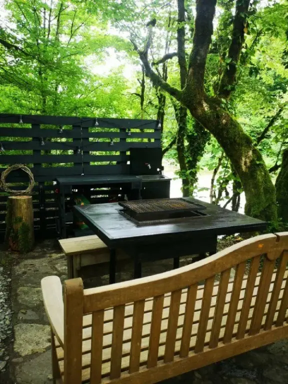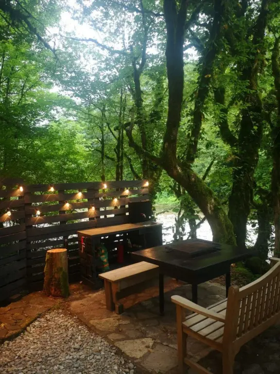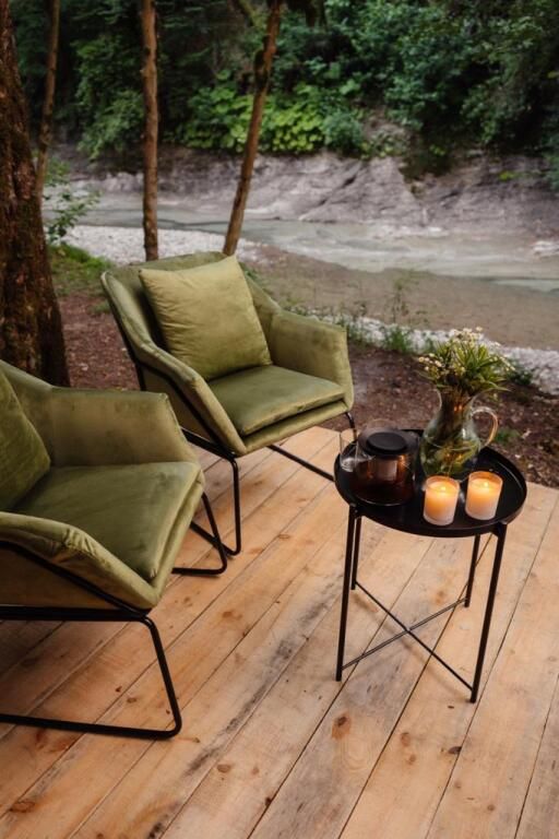 Столик на троих: вы, ваша вторая половинка и природа. В качестве дополнения у вас будет особенное секретное место. Вы насладитесь изысканными блюдами и вином, слушая серенаду стремительной реки.