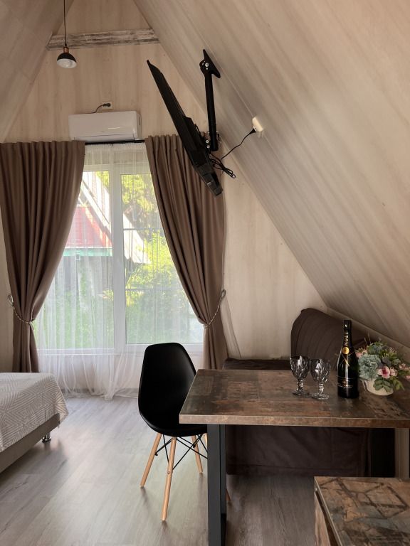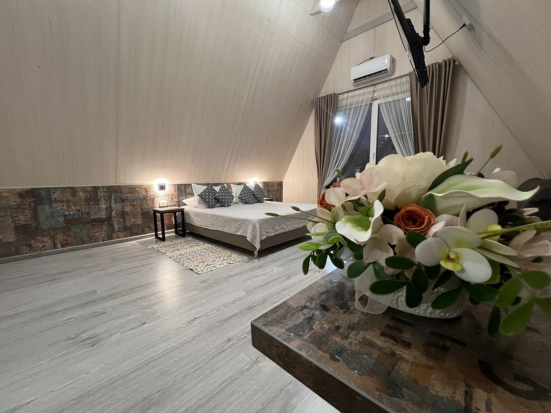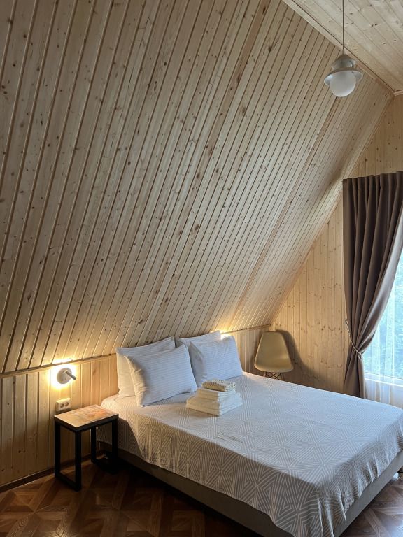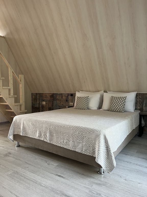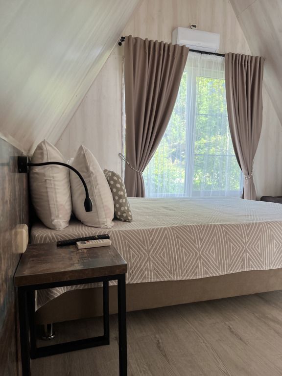 Погрузитесь в атмосферу уюта и современного стиля в номере A-frame, где каждый уголок создан для вашего комфорта. Просторное и светлое помещение с высокими потолками дарит ощущение свободы, а панорамные окна открывают захватывающий вид. Здесь вы сможете просыпаться под звуки природы и наслаждаться утренним солнцем, отражающимся в спокойных водах.