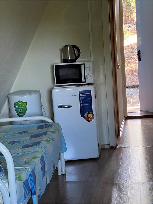 Отдельно стоящий домик. Имеет просторную комнату с собственным с/у, кондиционером, комфортными кроватями и необходимой бытовой техникой.