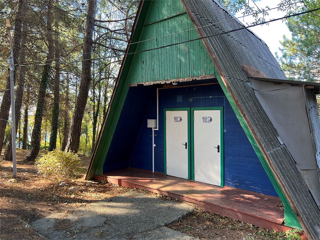 Закрытая территория базы в 2 гектара предлагает своим гостям уютные домики в стиле типа А-фрейм, номера в двухэтажной гостинице, близость к пляжу, детскую игровую площадка и качели среди сосен, где юные гости и их родители смогут наслаждаться природой в любое время года.