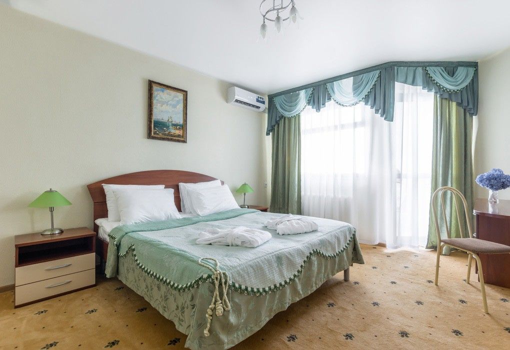 Двухместный двухкомнатный номер (относится к 1-ой категории). Номера расположены в корпусах № 1, 3. В каждой комнате имеется отдельный балкон. В номере есть все, необходимое для отдыха и оздоровления. Если Вам нужна дополнительная уборка, дополнительная смена постельного белья, туалетные принадлежности, одноразовые тапочки - обратитесь к сотрудникам службы приема и размещения - услуга платная. Для самых маленьких гостей предоставляются бесплатно: детские кроватки (1250*650), услуга под запрос. Обратите внимание! Есть номера без возможности дополнительного места. Этаж и номер корпуса присваиваются при заселении, исходя из наличия свободных чистых номеров. При этом мы максимально учтем Ваши пожелания, чтобы сделать Ваш отдых комфортным.Услуги и удобства
