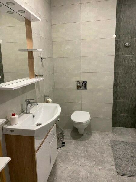 В ванной комнате: современная сантехника, душевая кабина, туалетные принадлежности, махровые полотенца, фен. В комплексе есть прачечная и место для глажки белья.