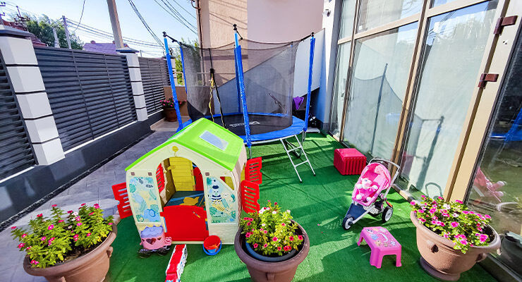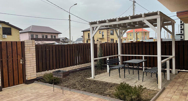 Огороженная территория, есть зона для отдыха, просторный двор.