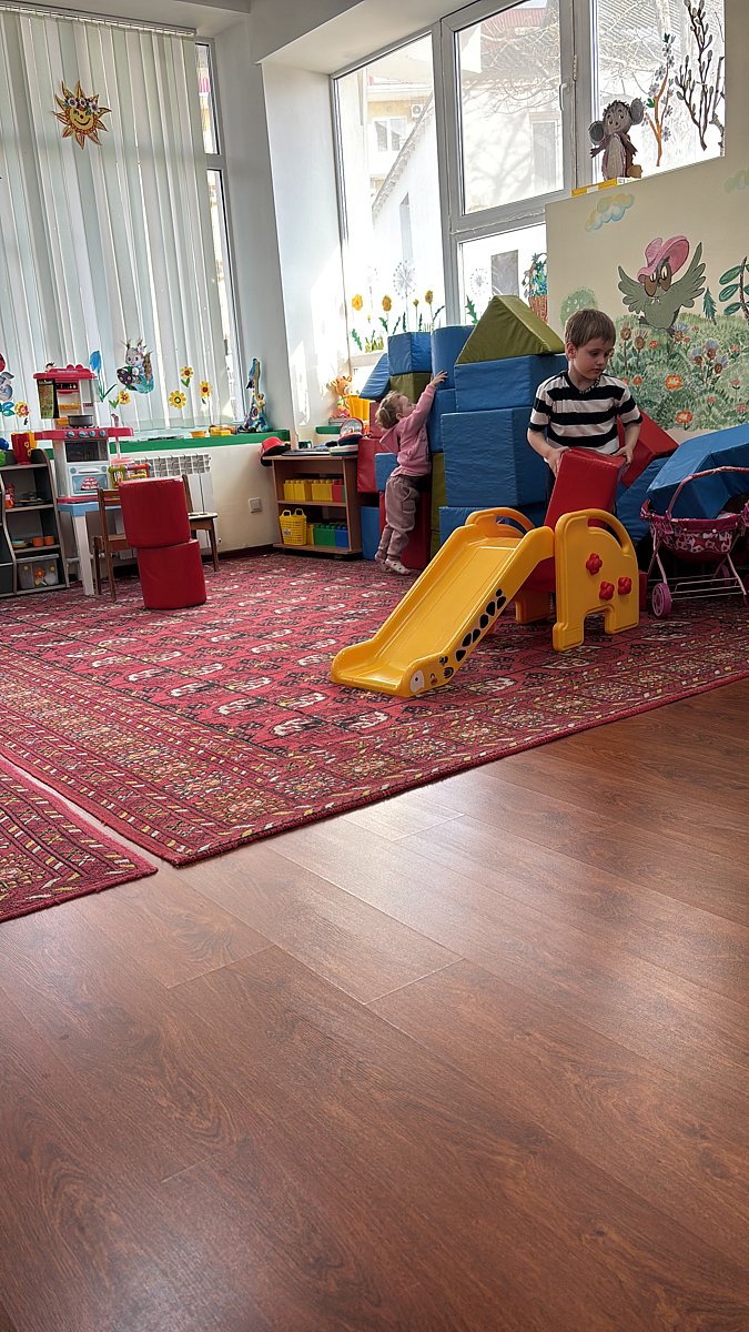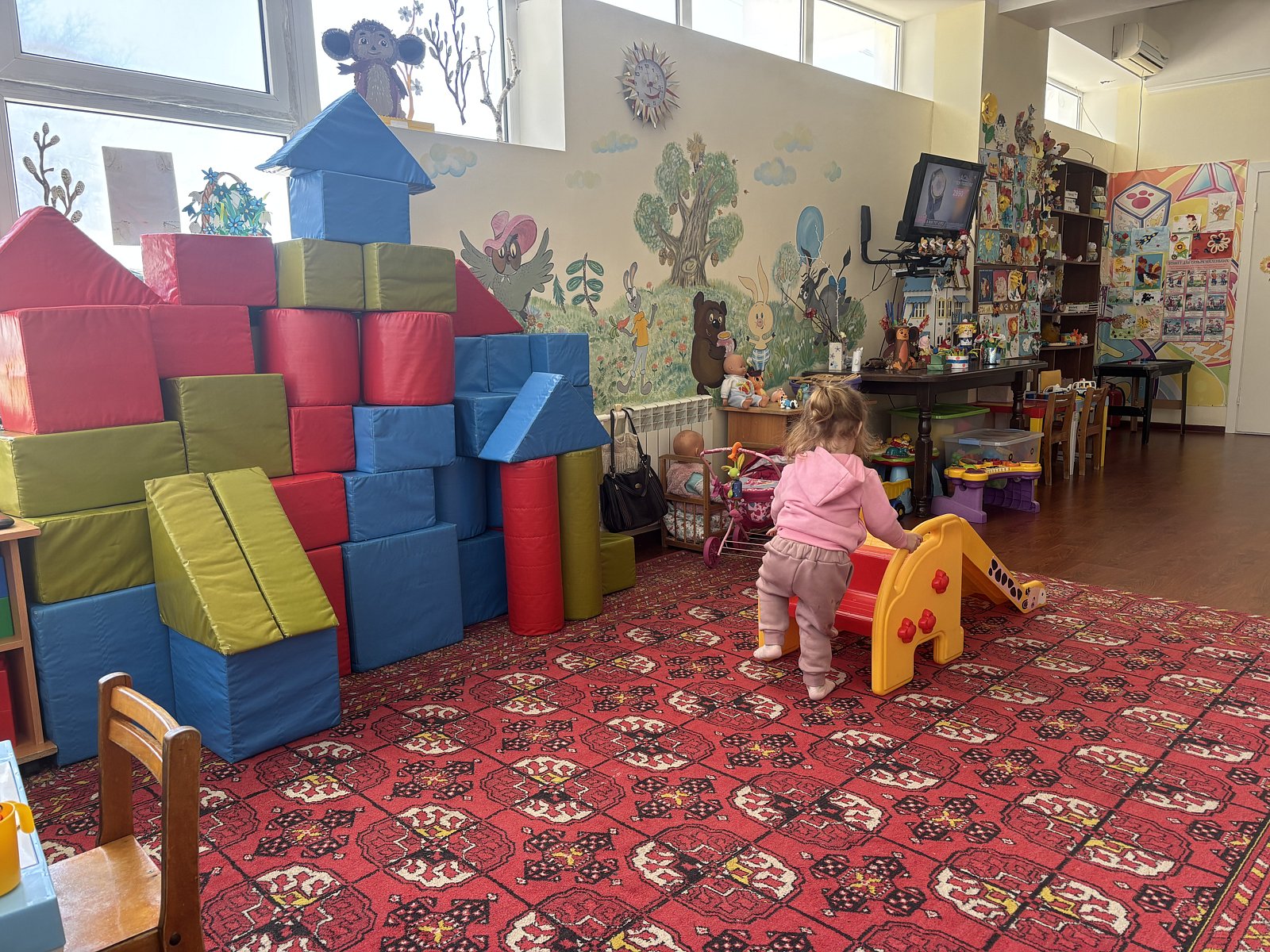 Детская комната «Забава» с воспитателем работает с утра и до вечера. Дети под присмотром педагога на протяжении целого дня заняты развивающими играми, просмотров мультфильмов, рисованием, лепкой, поделками, чтением сказок.
