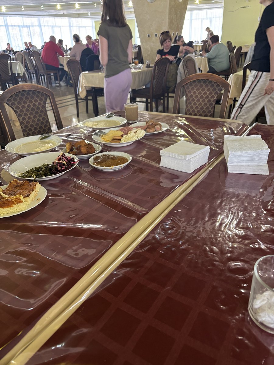 Трехразовое питание по системе «шведский стол» (в летнее время). «Шведская линия» включает завтраки, обеды и ужины, проходящие в отдельно стоящем здании столовой, общая вместимость которой 450 посадочных мест. На выбор представлены блюда европейской кухни, выделена линия питания диетических блюд. Помимо основных блюд свежая выпечка, фрукты.