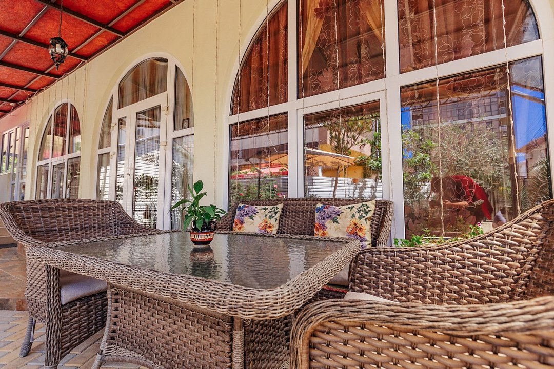 Гостевой дом «Мандарин» расположен на второй береговой линии, всего в нескольких минутах ходьбы от моря.
