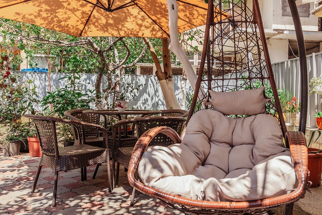 На территории гостевого дома есть красивый сад с фруктовыми деревьями, зона отдыха, общая кухня и Wi-Fi.