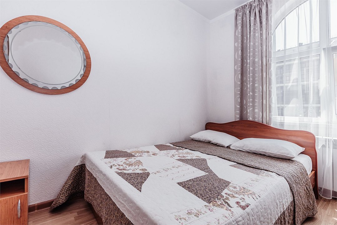 Четырехместный номер,с одной двуспальной кроватью и двумя раскладными креслами. Номер находится на 3 этаже дома,в номере свой санузел,кондиционер,холодильник,телевизор,фен.Всем проживающим доступен круглосуточный доступ и пользование общими пространствами.Услуги и удобства