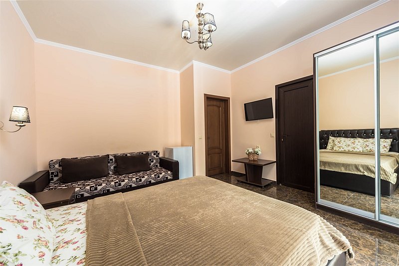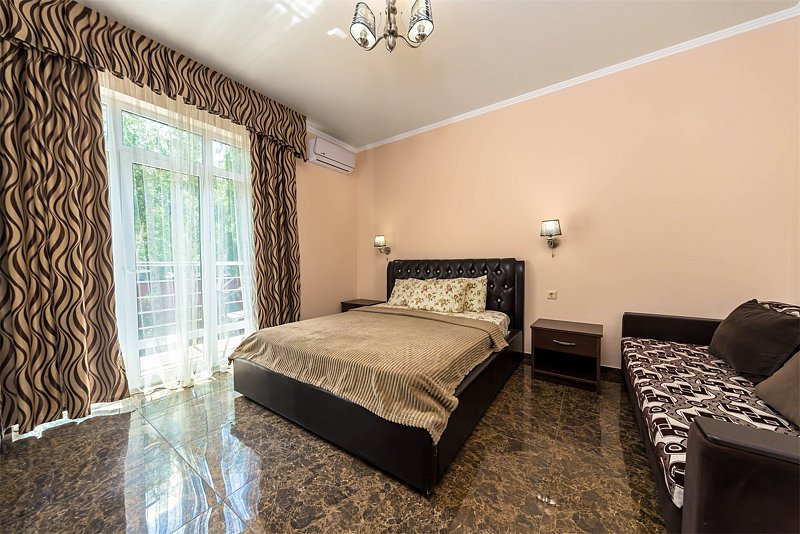 Все номера выполнены в классическом стиле и в светло-бежевых тонах, некоторые имеют выход на балкон и рассчитаны на три или четыре человека. Все комнаты оснащены современной техникой и необходимой мебелью для комфорта отдыхающих. Персональная ванная с гигиеническими принадлежностями.