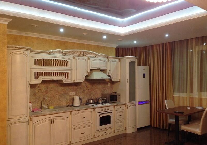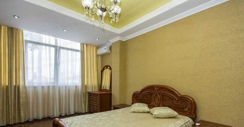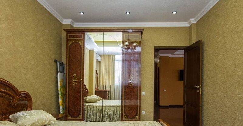 В номере: две двухспальные кровати, диван,телевизор, холодильник, кондиционер, пол с подогревом, два больших шкафа, кухня со всем необходимым, ванная комната (ванная, унитаз, стиральная машинка, умывальник).
