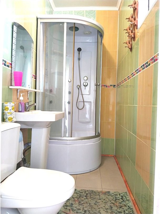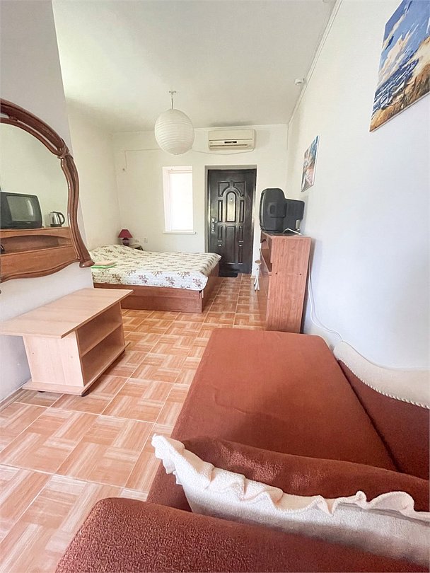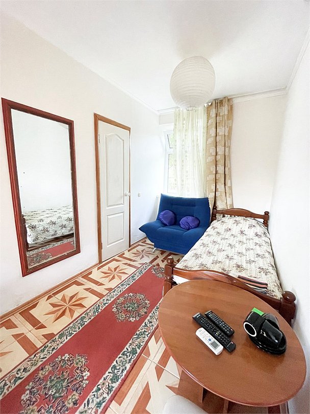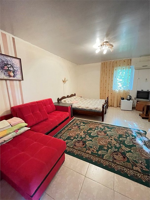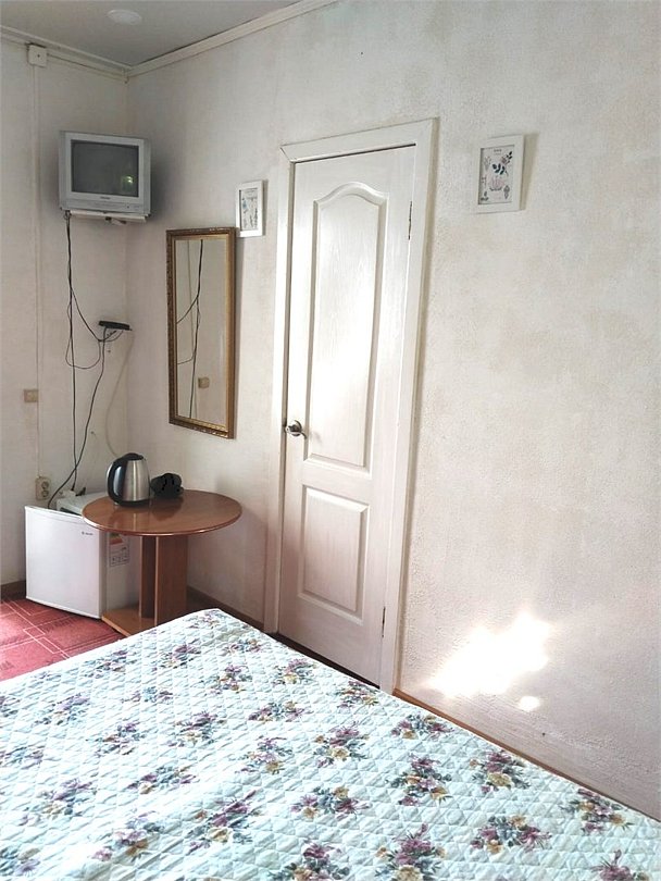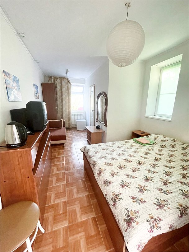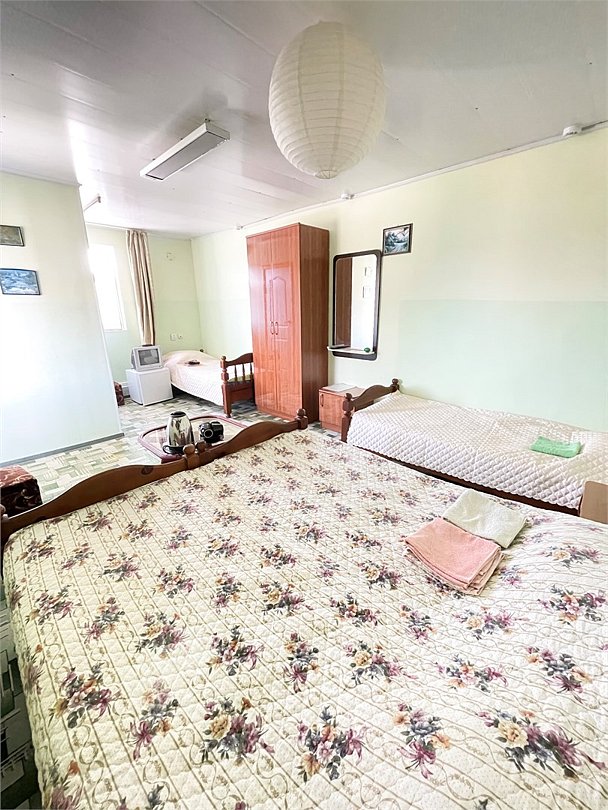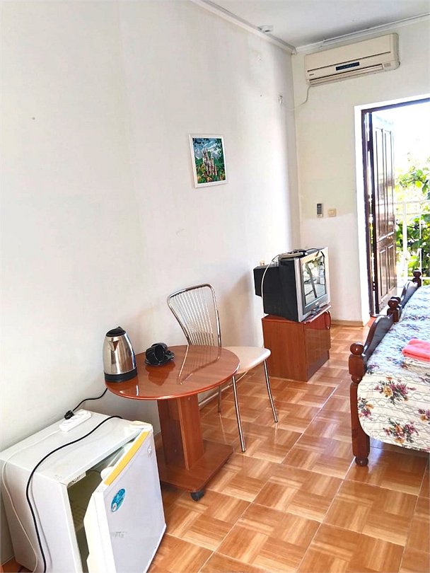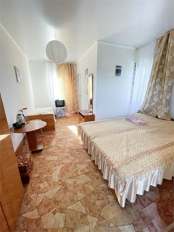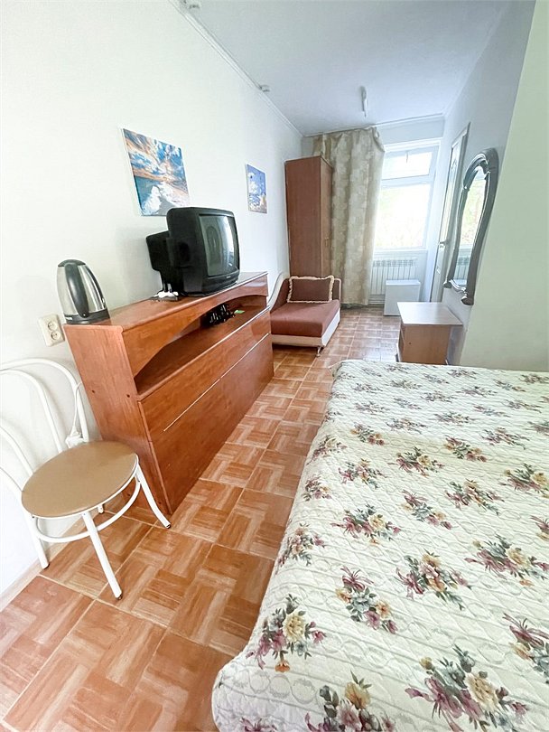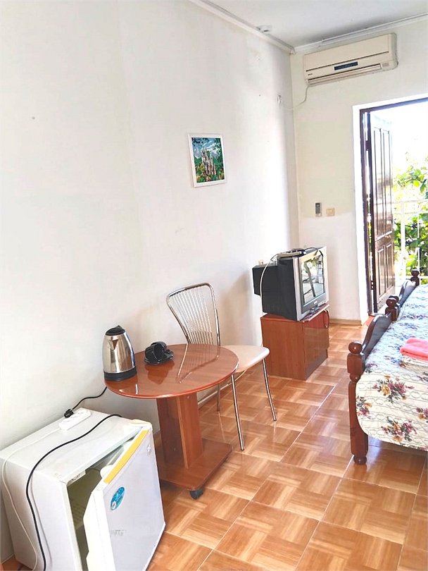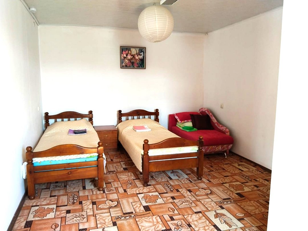 телевизор, Wi-Fi, светильник, душевая кабина, санузел, диван, тумбы, шкаф для одежды, вешалки, журнальный столик, зеркало, ковер, чайник, раковина, вид на сад, плиточное покрытие, три односпальные кровати, стул, туалетный столик, туалет, сплит-система, мангал, сушилка для белья, мини-холодильник, москитная сетка, пуфик, общественный бассейн, двуспальный раскладной диван-кровать, уборка номера, вешалки-плечики, мыло, можно с питомцамиВ гостиничном номере