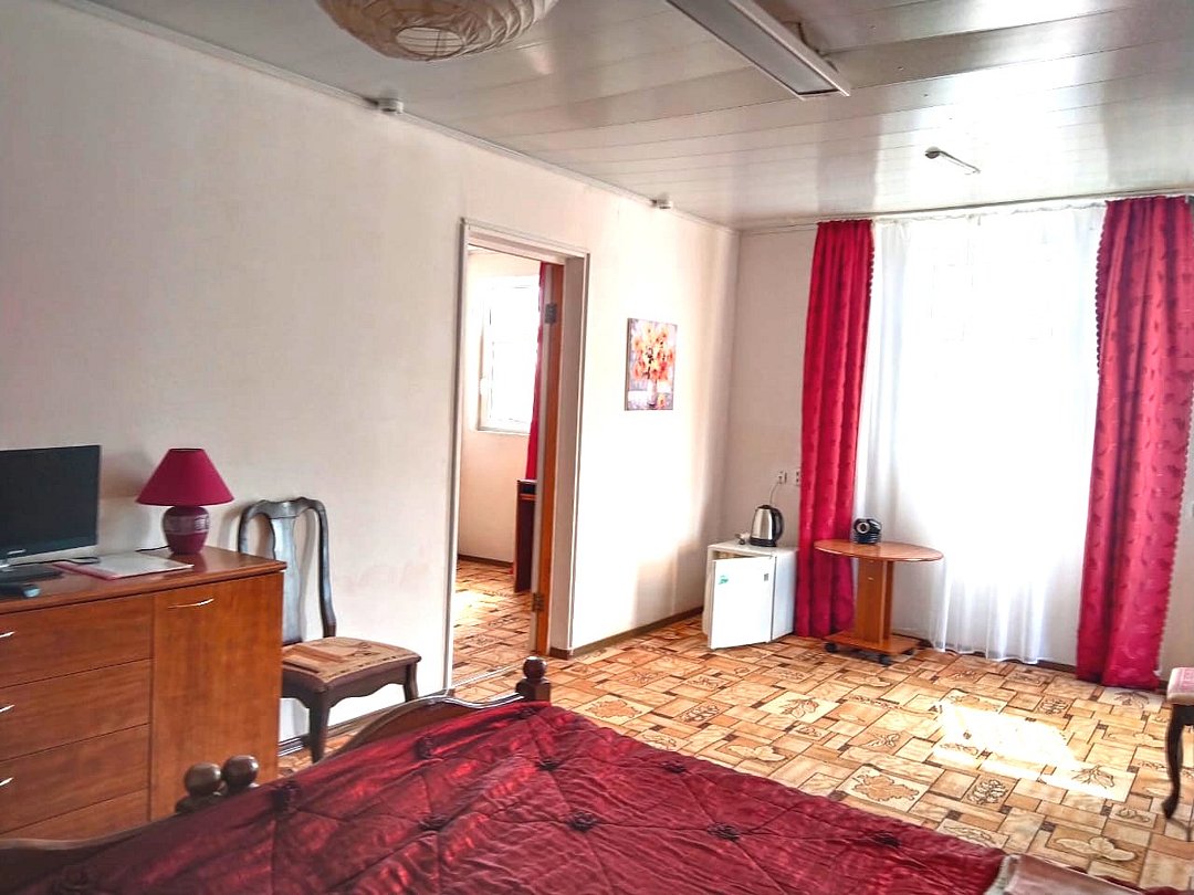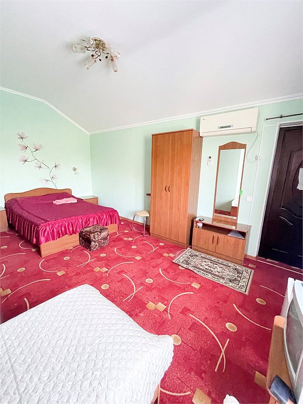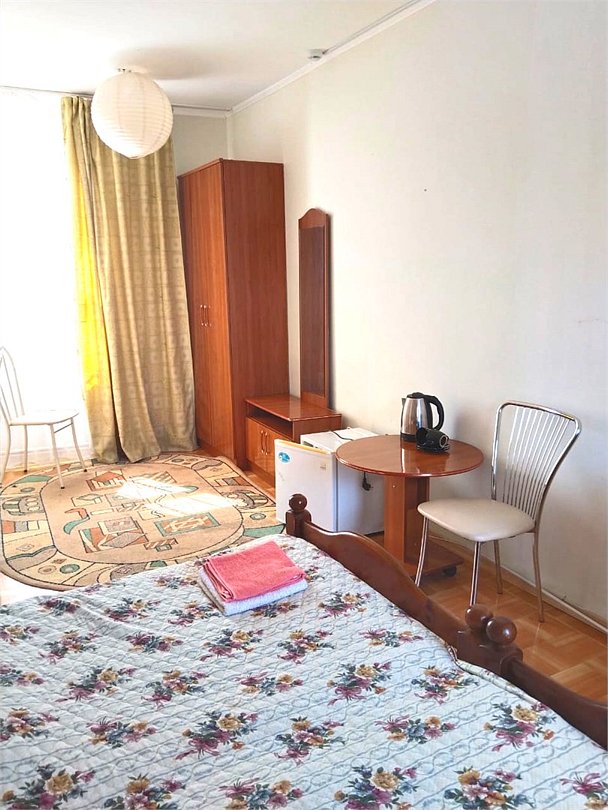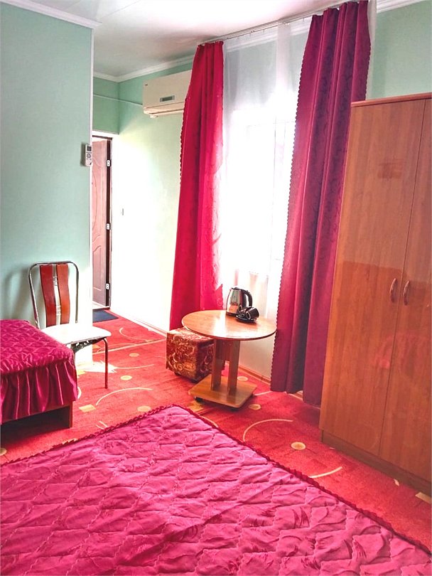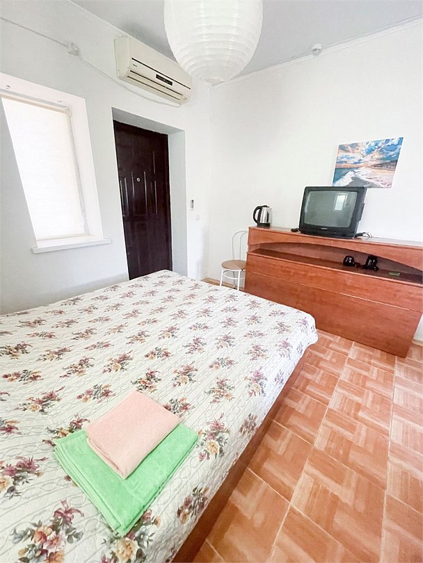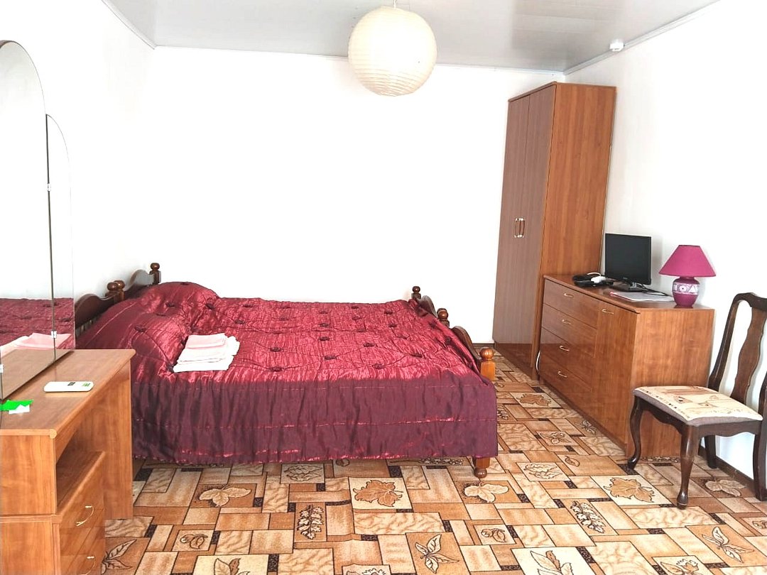 телевизор, Wi-Fi, система климат-контроля, душевая кабина, санузел, банные полотенца, две двуспальные кровати, тумбы, шкаф для одежды, журнальный столик, зеркало, чайник, раковина, отдельный вход в номер, душ, вид на город, вид во двор, стаканы, мангал, сушилка для белья, москитная сетка, номер для некурящих, общественный бассейн, холодильный шкаф, фумигатор, уборка номера, услуги прачечной (платно), частный двор, небольшой бассейн, можно с питомцамиВ гостиничном номере