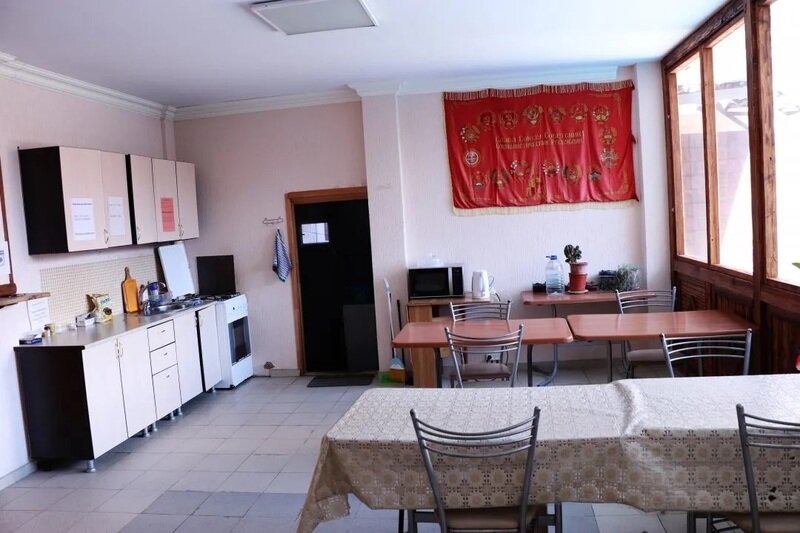 На территории организована общая кухня, где можно самостоятельно приготовить еду.