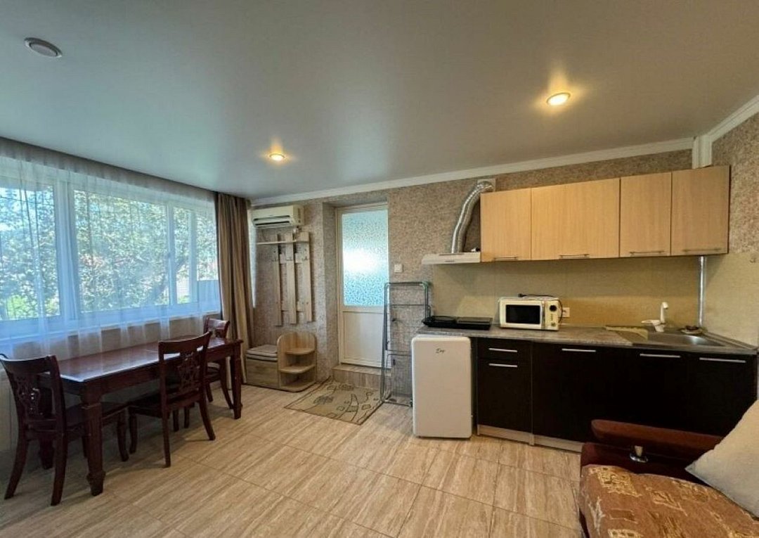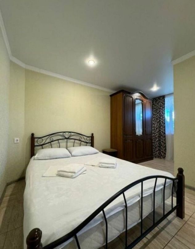 Двухкомнатный номер с отдельным входом. Двуспальная кровать, раскладной диван, кухонный гарнитур, посуда, холодильник, плита, чайник, сан.узел.