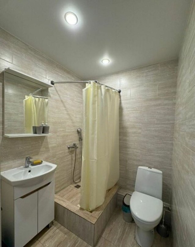 Двуспальная кровать, односпальная кровать, сан.узел.
