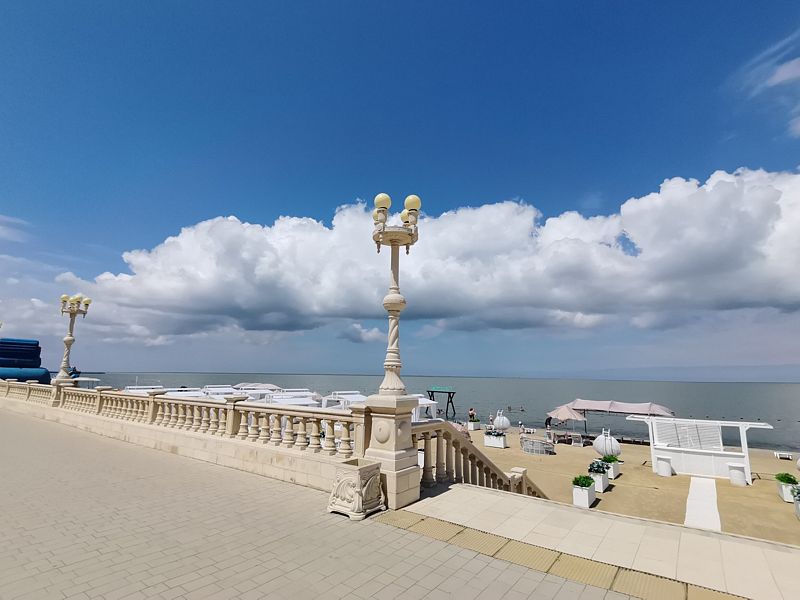 Тип пляжа: галечный, оборудованныйИнфраструктура: лежаки, зонтики, шезлонги, спасательРасположение: в пешей доступности -