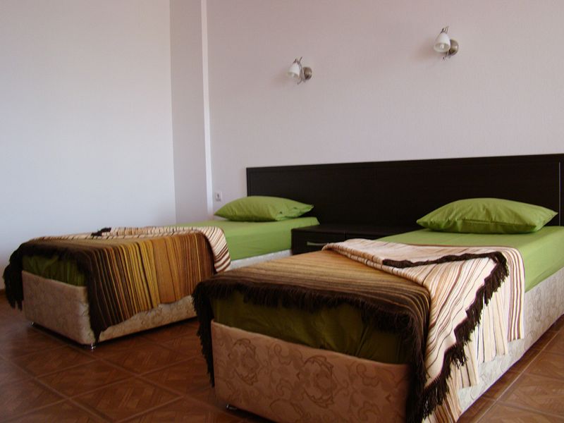 Путешествие по работе$Заселились из соседнего отеля. Гораздо чище и просторнее. Достаточно большая и светлая комната с балконом с видом на море и закат. Чисто, аккуратно, без лишних запахов. Туалет отдельно от ванной, к тому же комната изолирована от прихожей и санчасти. В комнате помимо кроватей есть диван и пуфики,очень удобно. Большой шкаф и сейф. Ванна в рост. Ножа и приборов н нашли, но нам все дали. Персонал приветливый от администратора до хозперсонала.Плюс завтрак, для командировочных однозначный плюс. На этаже кулер, гладильная, манежи для малышей и комната с персоналом, готовым помочь если есть вопросы. Пляж 10 метров. Очень приятное место.