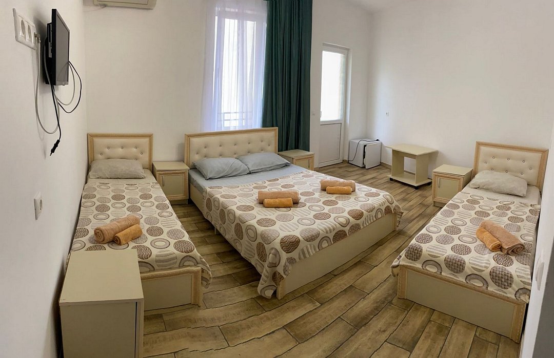 Номера располагаются в трехэтажном здании и оснащены всем необходимым для комфортного отдыха. В каждом номере есть телевизор, кондиционер и холодильник, прикроватные тумбы, шкаф для одежды и личный санузел. С каждого номера есть выход на балкон со столиками.К услугам гостей бесплатный Wi-Fi в номерах и на территории.