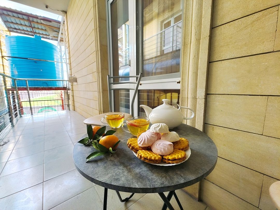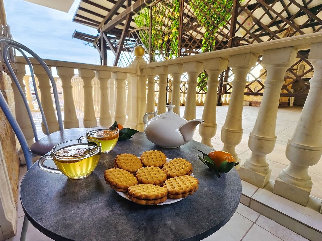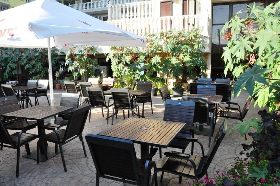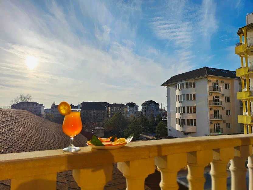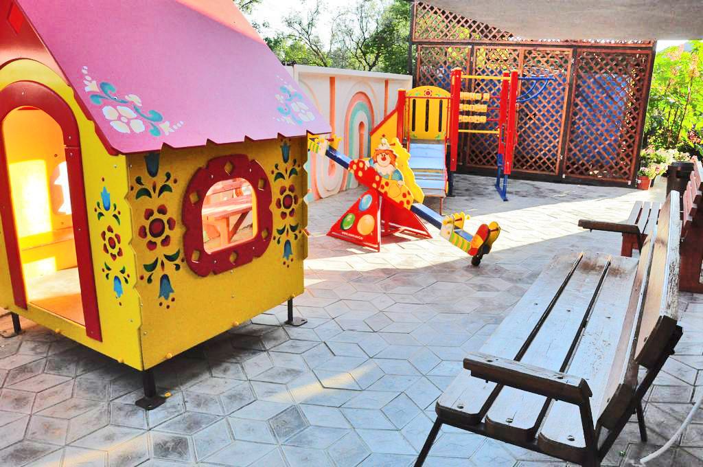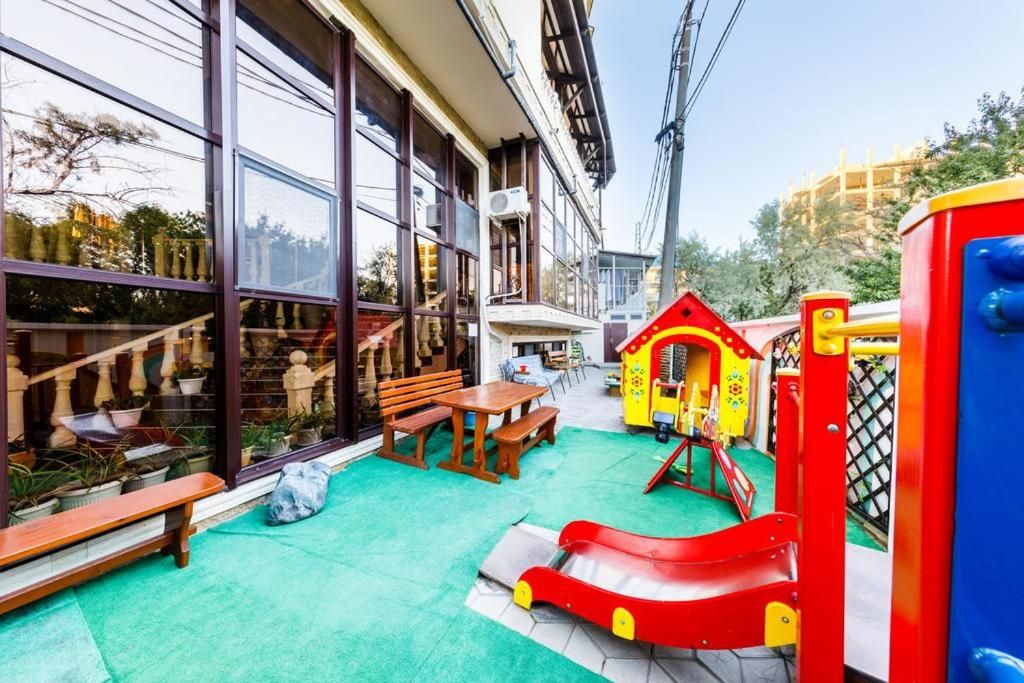 На территории есть просторный бассейн с подогревом и с детским отделением, где можно быстро освежиться в жаркий день, зона отдыха, игровая площадка. Веселые и доброжелательные аниматоры не дадут скучать ни Вам, ни вашим детям. Оказывается необходимый набор услуг: питание по системе «Все включено» в столовой на первом этаже, трансфер, заказ экскурсий, услуги прачечной.