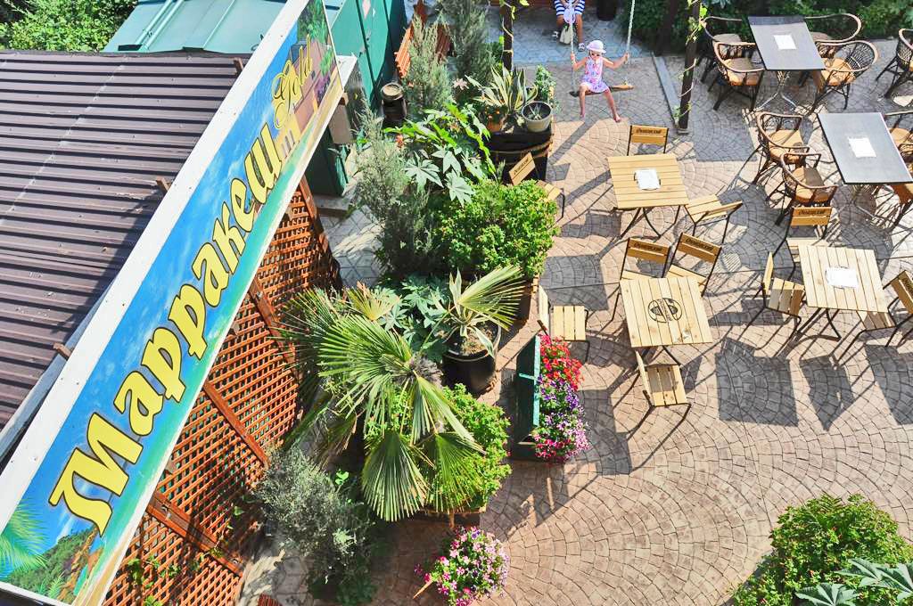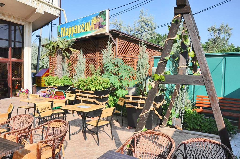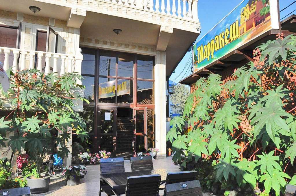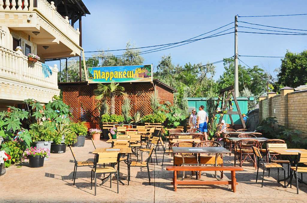 Путешествие с семьейНовый МарракешОтель работает с 1 августа под эгидой "Черноморской ривьеры" и за свои деньги нормальный, даже отличный. Номера хорошие, не убитые, уборка каждый день (вынос мусора, протирка полов), смена белья – через 3 суток. При заезде – промо - вода, гель, шампуни, мыло. Номера выходят либо на бассейн, либо на соседний отель- расстояние между балконами пару метров. Питание – хорошо, добротная пища и есть выбор, фрукты в наличии. Просто не надо ожидать мишленовского ресторана. Кофе-автомат в столовой, в баре тоже кофе был. Алкоголь – обычная водка и недорогие вина из пакетов, на удивление – неплохие. Пиво светлое и темное, светлое иногда рано заканчивалось. Делают коктейли, особенно Тёма, когда заменял бармена изощрялся, молодец. Он же и развлечениями заведовал, но тут уже печальнее.. Для детей было занятие, а для взрослых- только дискотека или конкурсы с 21 до 22х. До моря минут 10-15, до ривьеровского пляжа чуть подальше, это пара последних рядов, лежаков на все 3 отеля обычно не хватало в самое удобное время (после завтрака), до и после – освобождались. Главная проблема, кто приехал на машине - у отеля нет своей парковки, приходится искать.