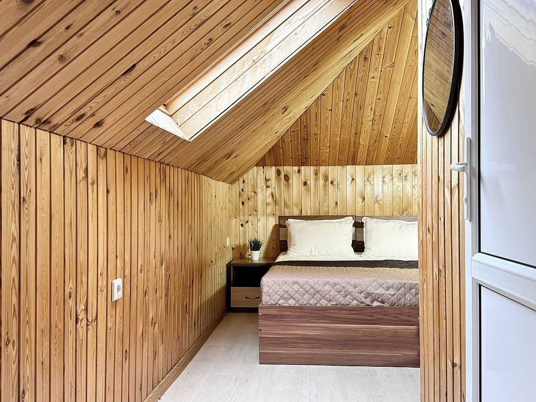 Небольшой однокомнатный угловой номер на мансардном этаже.