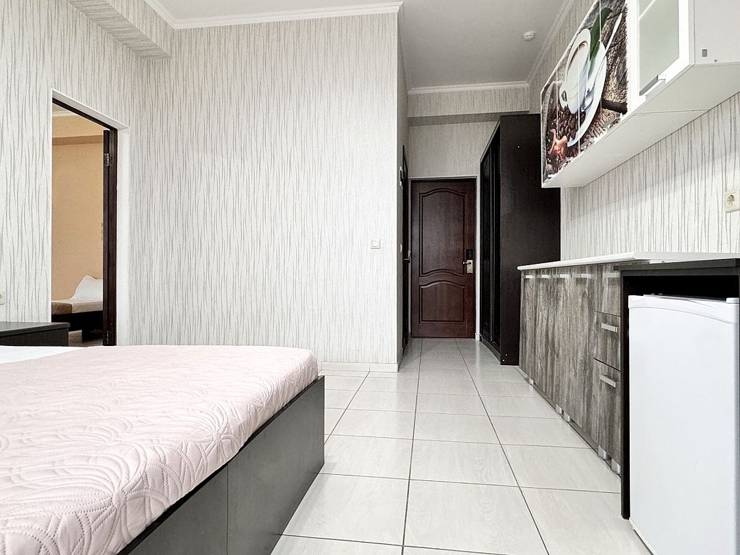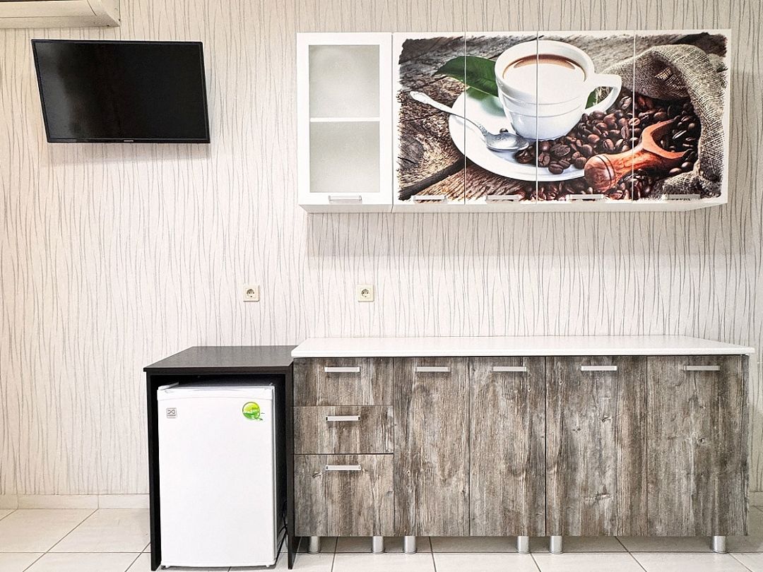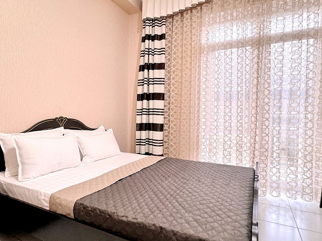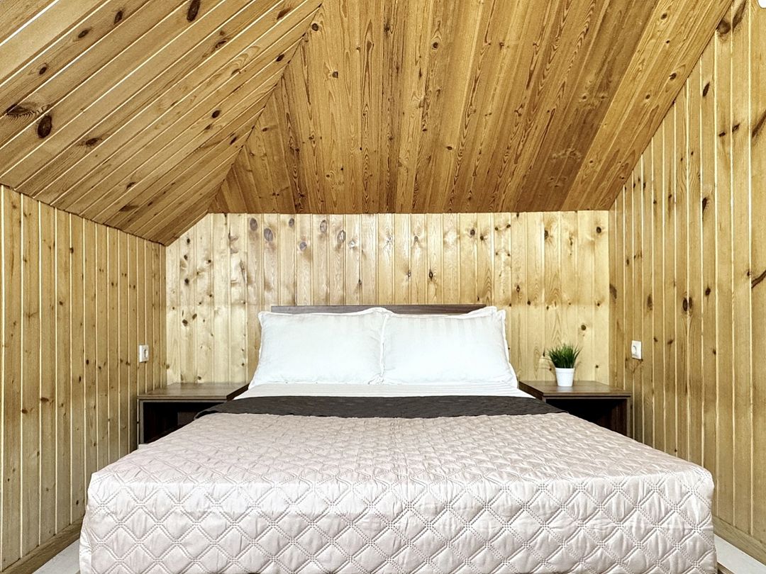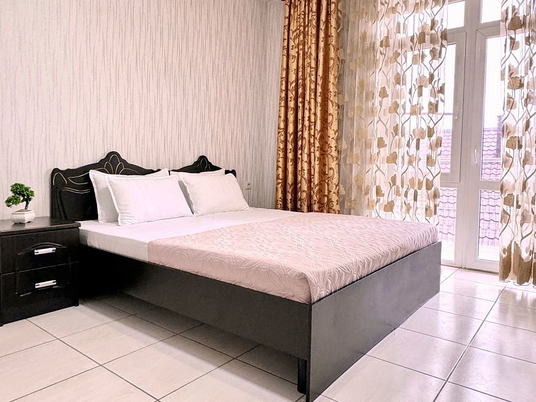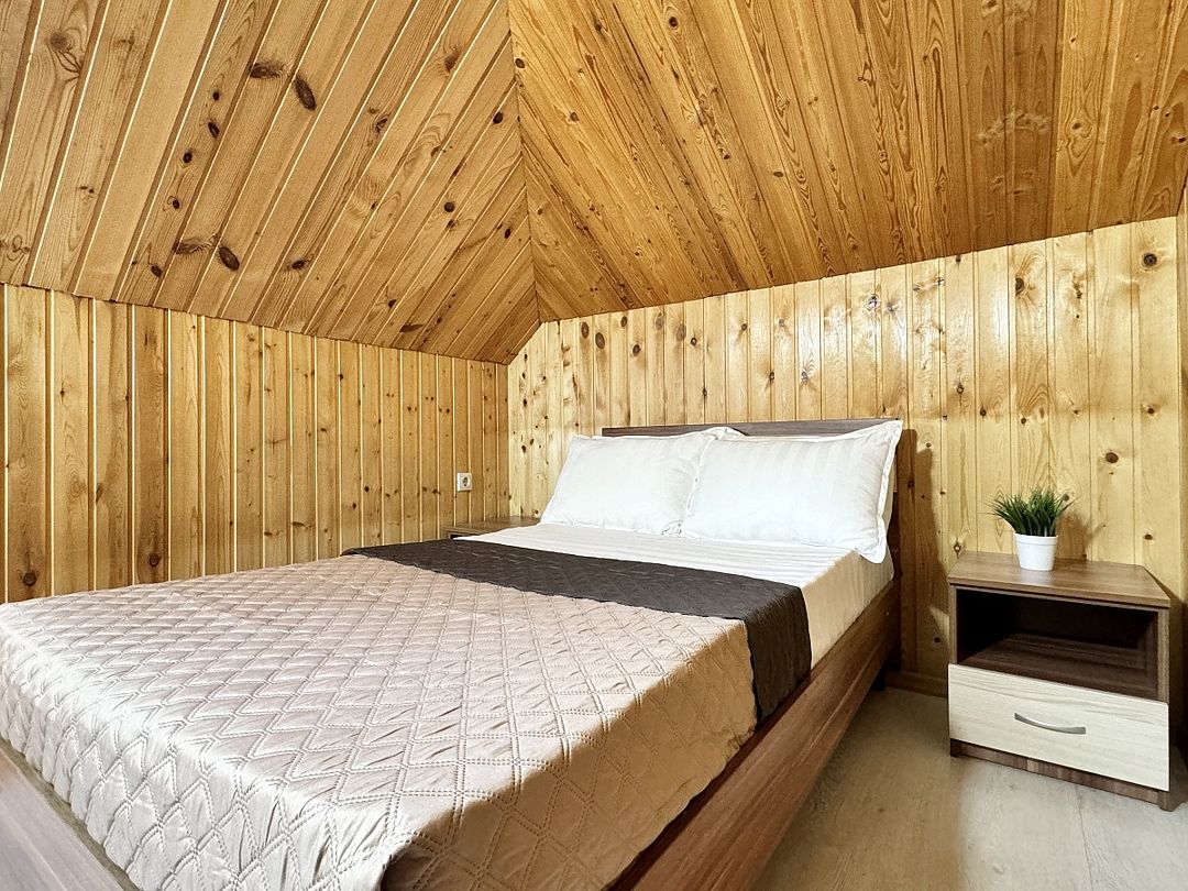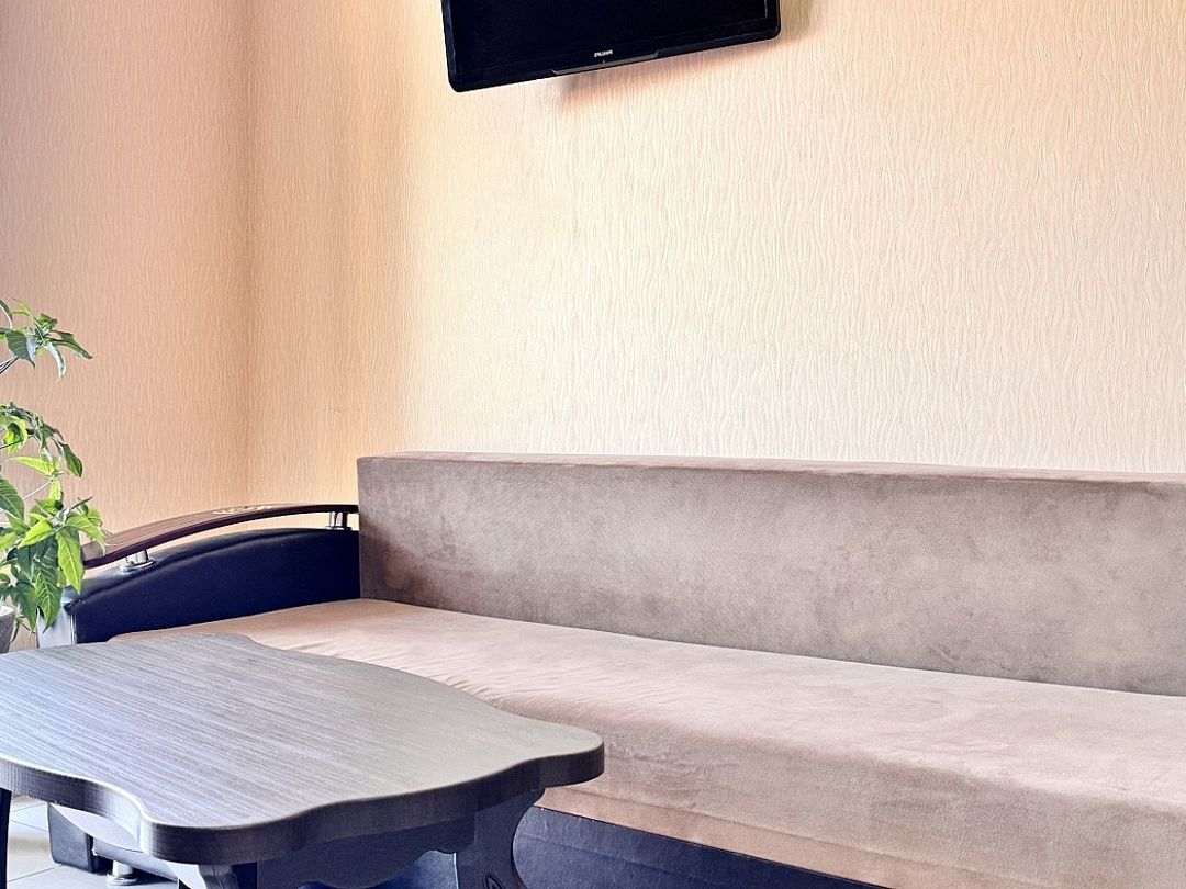 Номер оснащен: двуспальная кровать (140*200), прикроватная тумбочка, шкаф, тв, кондиционер, мини-холодильник.