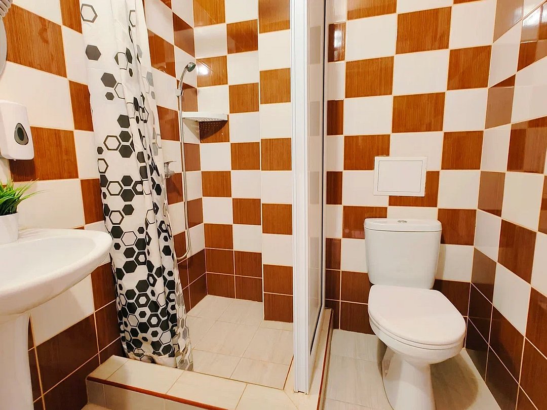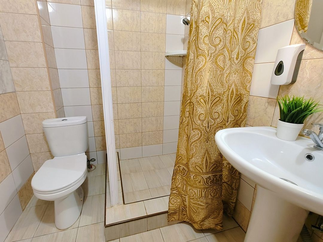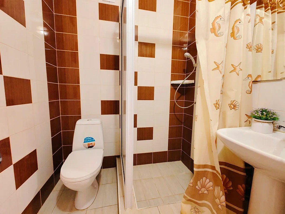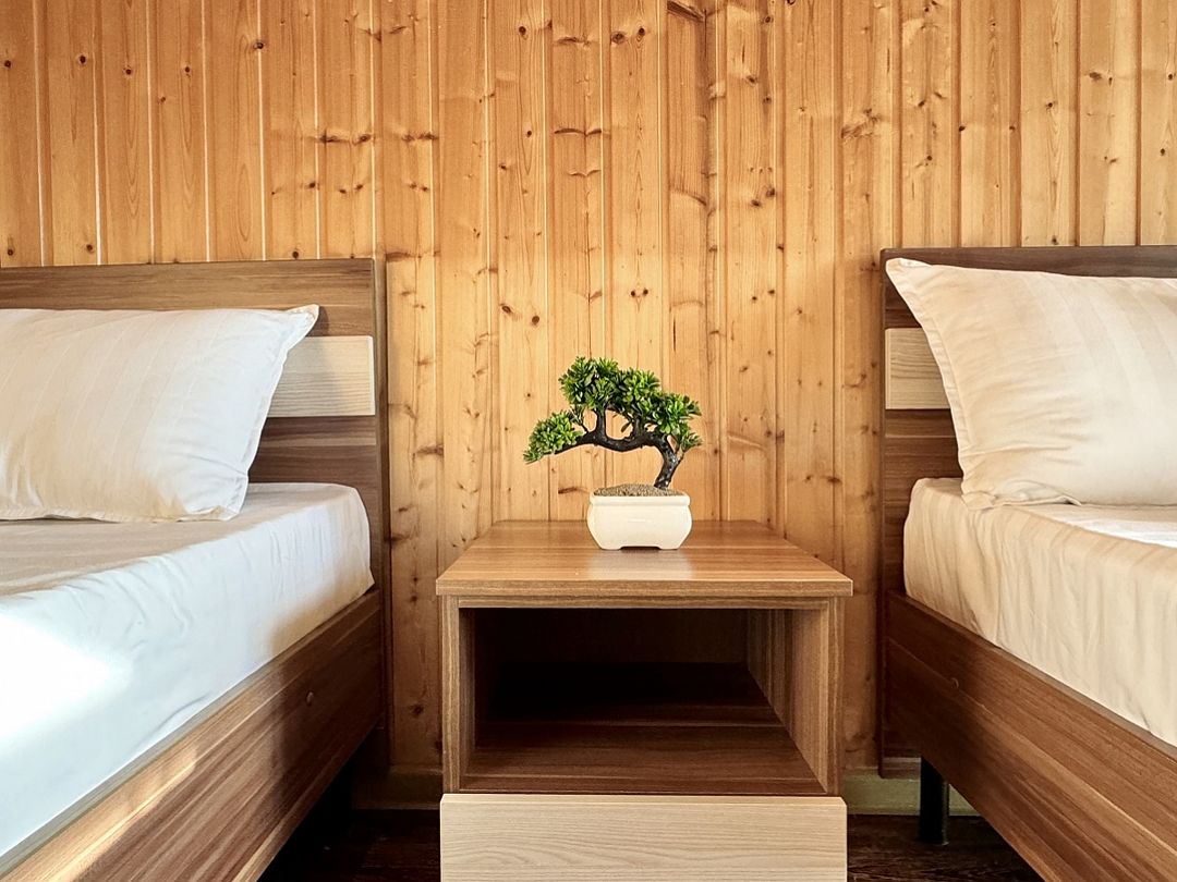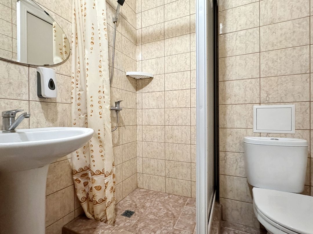 Номер оснащён: три односпальные кровати, прикроватная тумбочка, шкаф, тв, кондиционер, мини-холодильник. Маленькая ванная комната: душ, раковина, туалет.