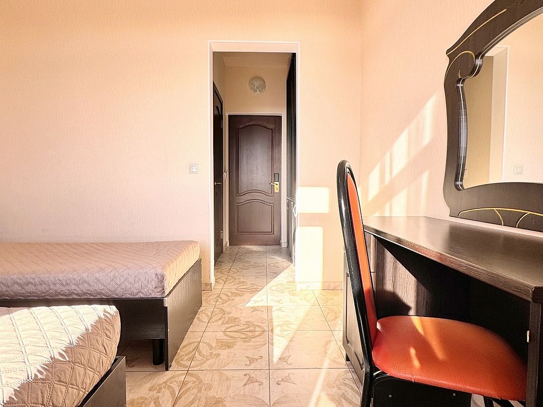 Номер оснащен: односпальная кровать 120*200, односпальная кровать 80*200, прикроватная тумбочка, шкаф, тв, кондиционер, мини-холодильник.