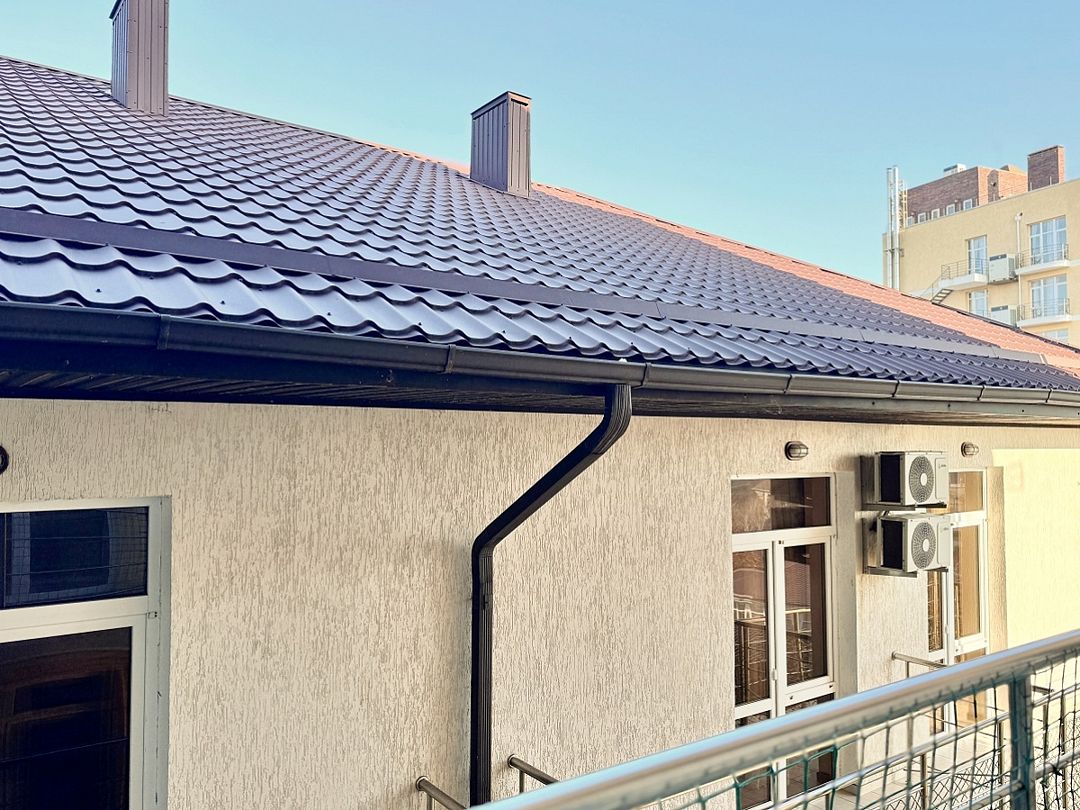Балкон с видом на крышу соседнего здания. Окна в номере открываются.