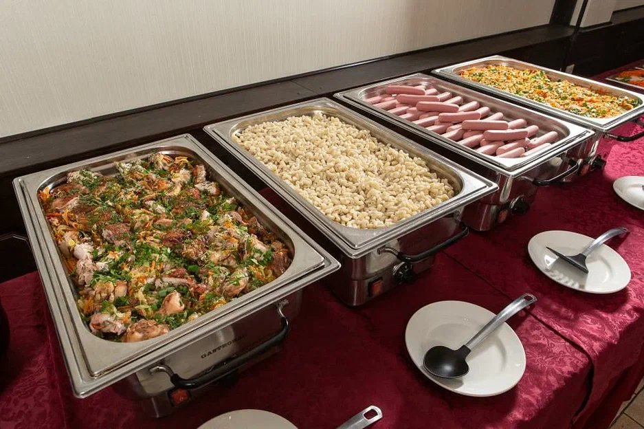 - 5-ти разовое питание по системе Шведский стол (Три основных приёма пищи и два промежуточных),