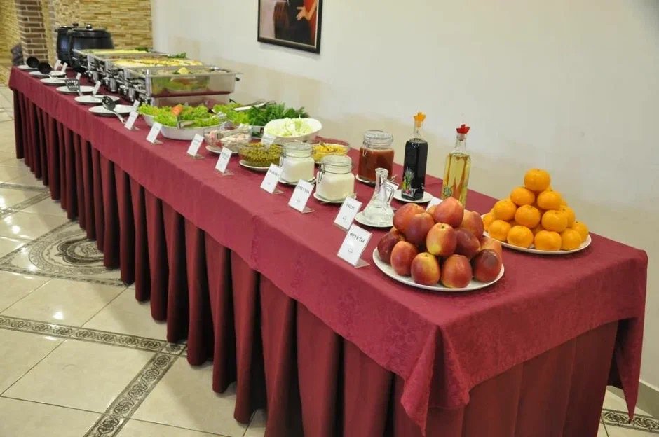 Питание на протяжении всего дня с 08:00 до 22:00: 3-х разовое питание по системе «Шведский стол» (администрация отеля оставляет за собой право перейти на комплексное питание при загрузке отеля менее тридцати пяти человек) и промежуточное питание с алкогольными и безалкогольными напитками.