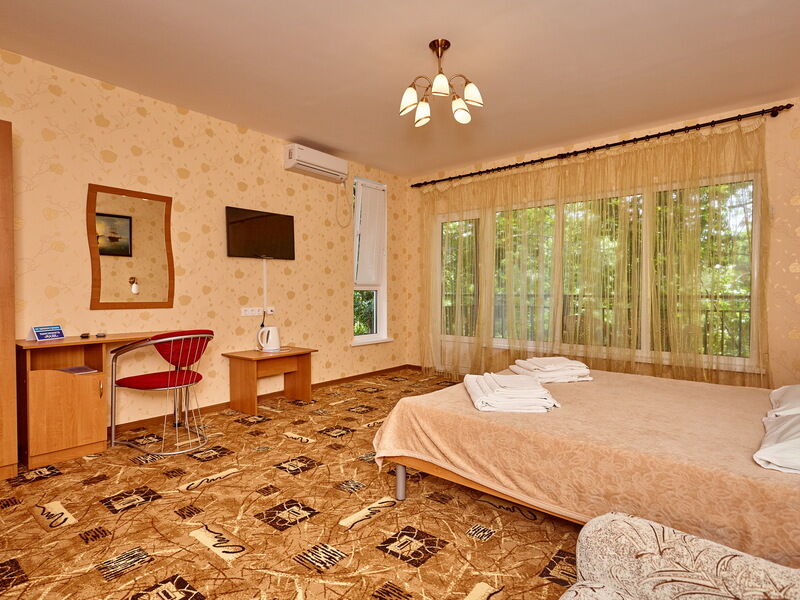 В пансионате 150 номеров, из них 75 с видом на море, остальные — с красивым видом на горы и окрестности. Номера просторные, с необходимой мебелью и уютным интерьером, многие с открытыми балконами. В каждом имеется телевизор, холодильник, санузел с душем. Уборка выполняется каждый день, замена полотенец