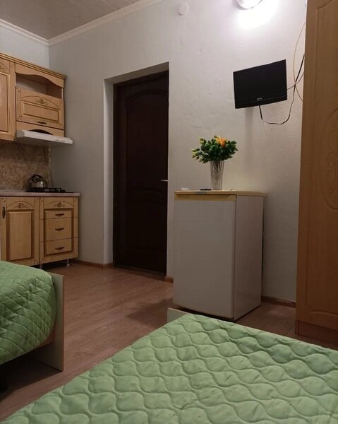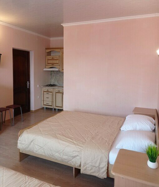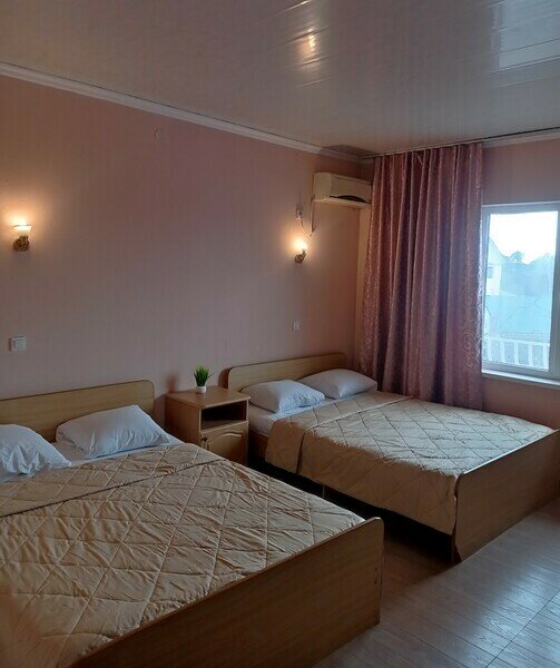 Небольшой уютный гостевой дом в 330 м от моря, есть парковка, летняя кухня со всей необходимой посудой, мангальная зона. Один корпус, всего 10 номеров стандарт со всеми удобствами, 4 общих балкона с умопомрачительными видами (по два на этаже), где гости могут посидеть, любуясь закатом, с бокалом любимого напитка.