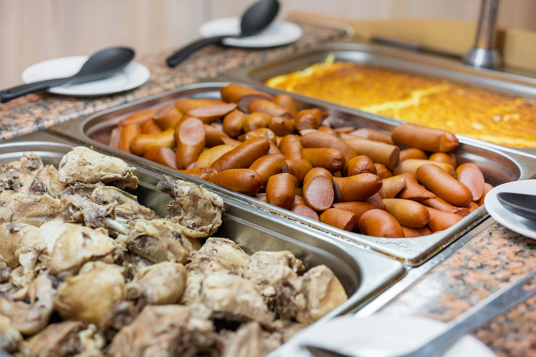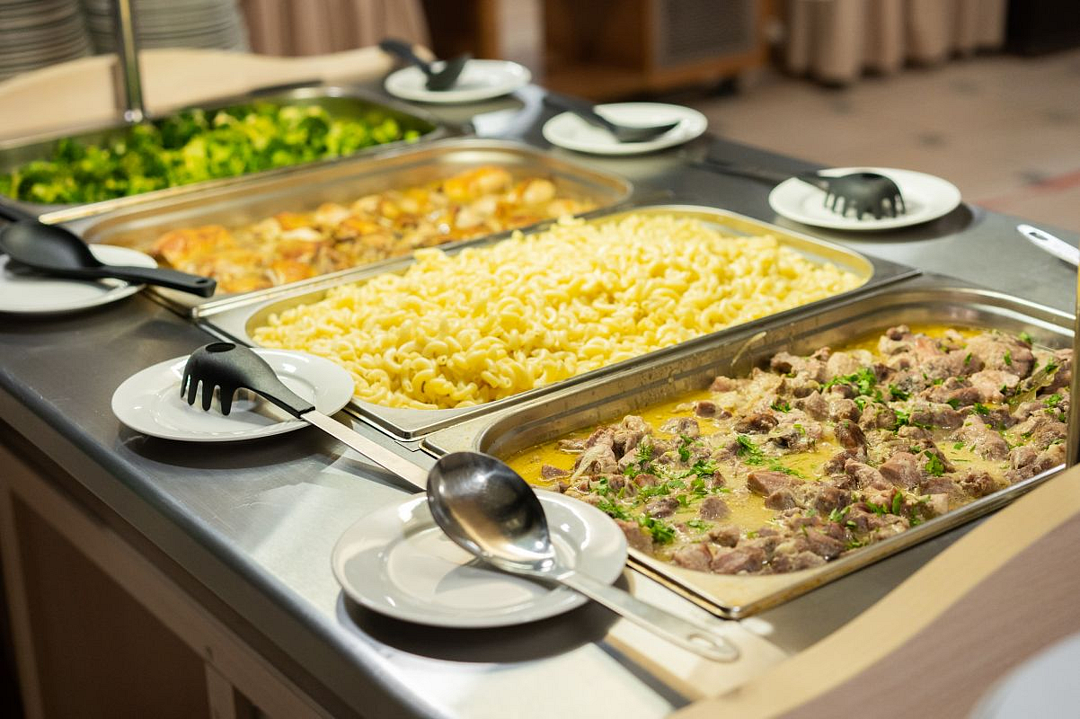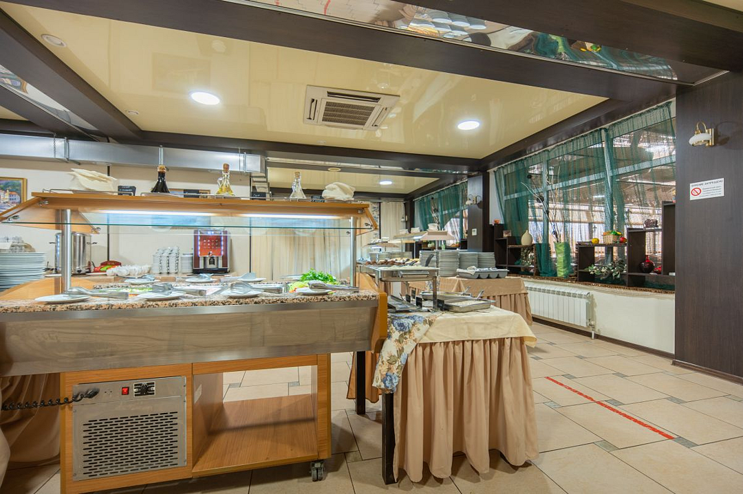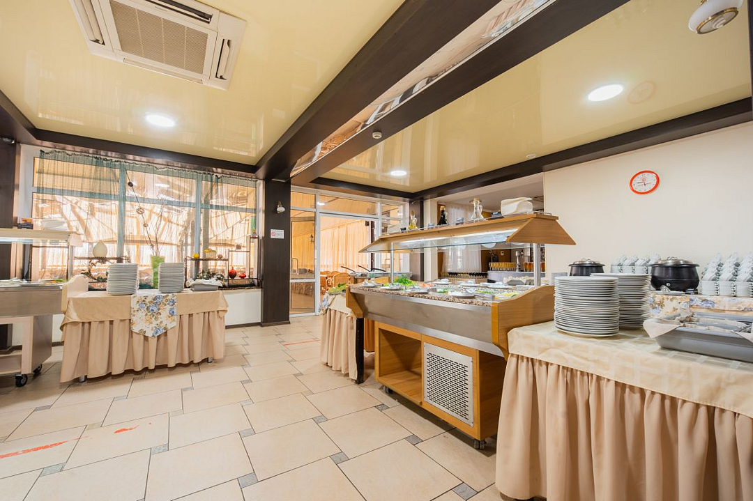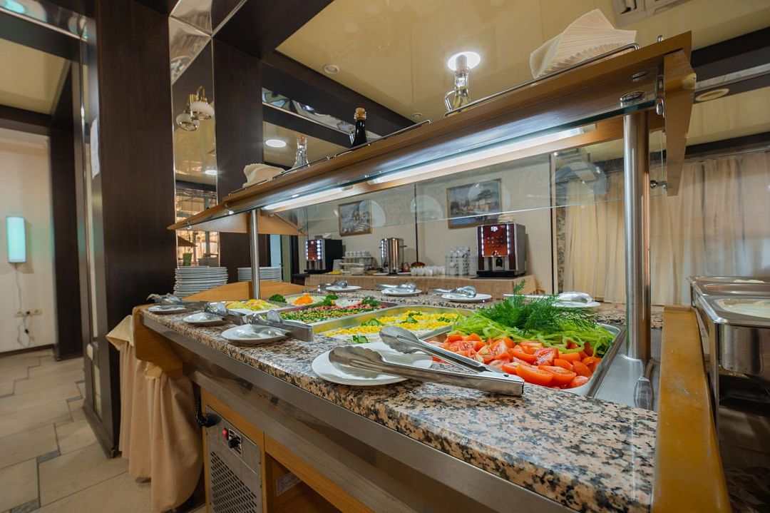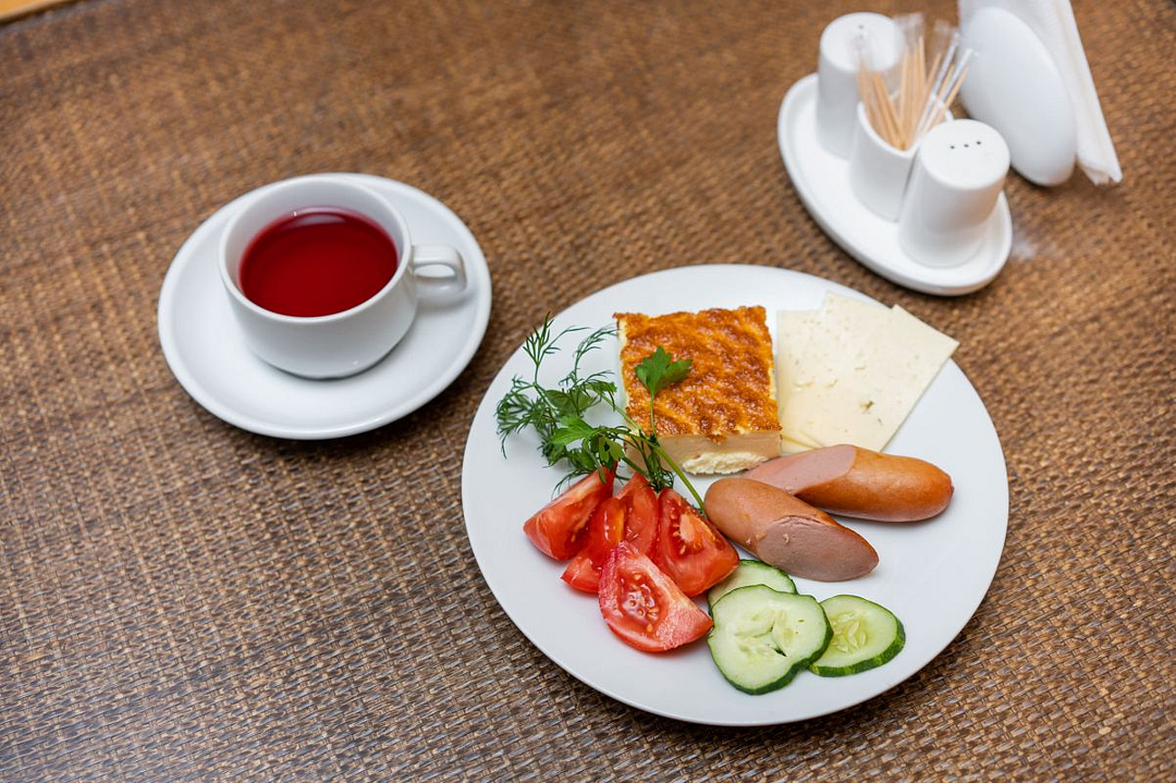 Гостей отеля приятно удивит разнообразие блюд: салаты, горячие и холодные закуски, соленья, первые и вторые блюда, каши, сезонные фрукты; ассортимент горячих и прохладительных напитков.