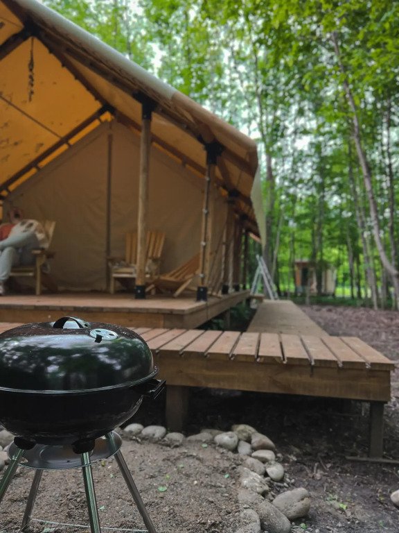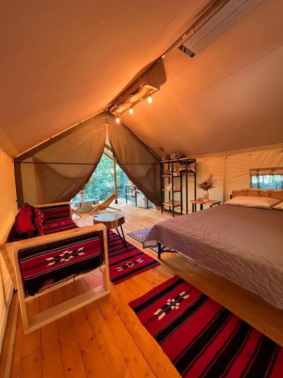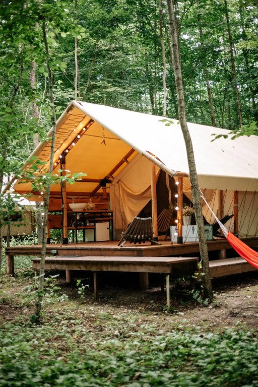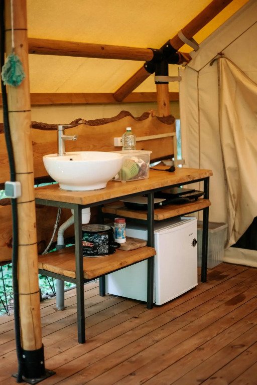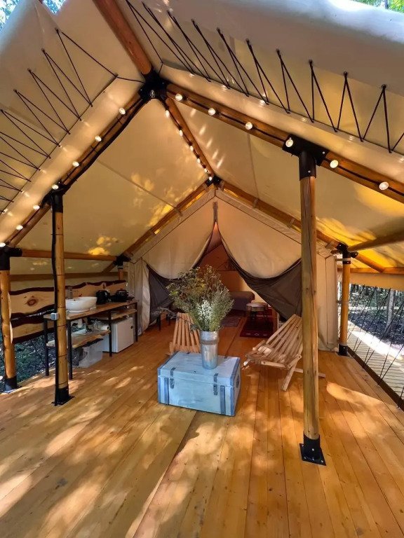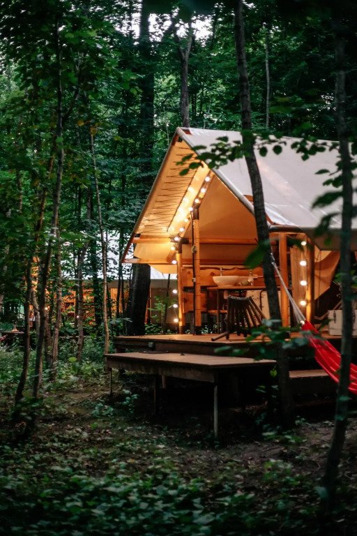 Глэмпинг "Место" находится в живописных предгорьях Апшеронского района вблизи реки Пшеха на краю реликтового леса. Отдых в комфортабельных жилых домиках, расположенных в лесу, на достаточном расстоянии друг от друга, что создает максимальное уединение. 3 вида размещения: Капсула, Афрейм, Сафари-тент. Для каждого модуля свой санитарный блок.