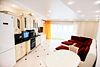 Имеется телевизор, кондиционер, шкаф, зеркало, обеденный стол, рабочее место, журнальный столик, комод, туалетный столик, кухня, микроволновая печь, чайник, холодильник, электроплита.