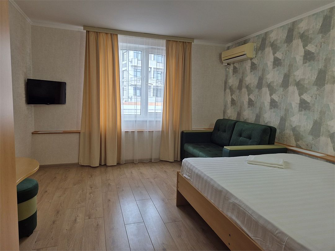 Wi-Fi, светильник, фен, душевая кабина, банные принадлежности, косметические средства, двуспальная кровать, шкаф для одежды, вешалки, зеркало, набор посуды, обслуживание номеров, сейф, унитаз, раковина, питьевая вода, отопление, плиточное покрытие, вид во двор, ламинат, стаканы, стол, тумба, туалетные средства, сплит-система, диван-кровать, раскладной диван, телевизор с плоским экраном, мини-холодильник, москитная сетка, гостиничная парфюмерия, номер для некурящихВ гостиничном номере