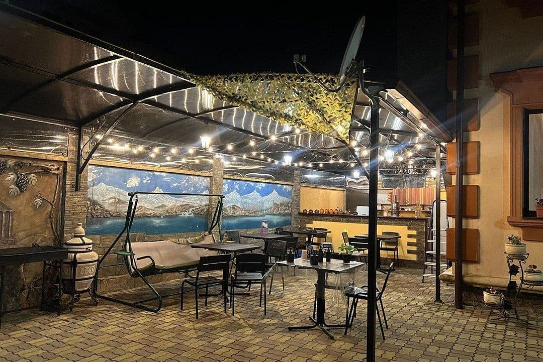 Лаунж-зона с общей кухней, фонтанчиком и мангалом.