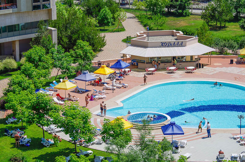 Здравница готова предложить высокий уровень сервиса для 1115 гостей. Курортный комплекс работает круглогодично и отличается выгодным географическим местом расположения – неподалёку находятся аквапарк «Дельфин», дельфинарий «Аквамир», а также набережная с туристической инфраструктурой. Спуститься к пляжному комплексу можно на современном скоростном лифте.