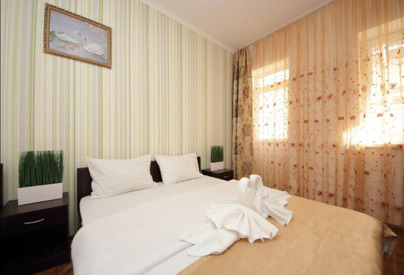 В номере одна двуспальная или две односпальные кровати. Есть сушилка для белья, постельное и по 2 полотенца для каждого гостя.