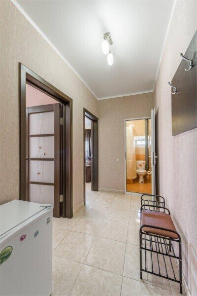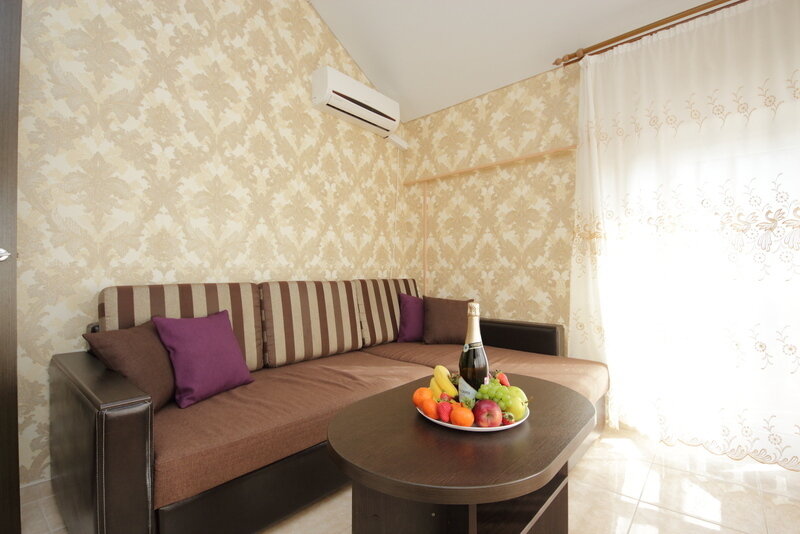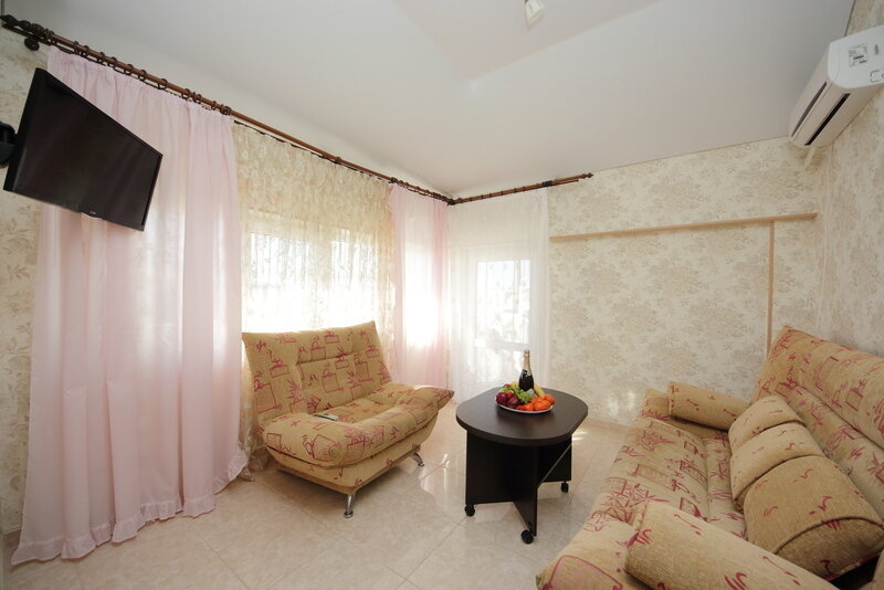 Одна двуспальная кровать, два диван-кровати и кресло. Можно поставить дополнительное место — раскладное кресло. В каждой комнате есть телевизор, балкон, кондиционер. В номере есть сушилка для белья, полотенца и постельное белье.