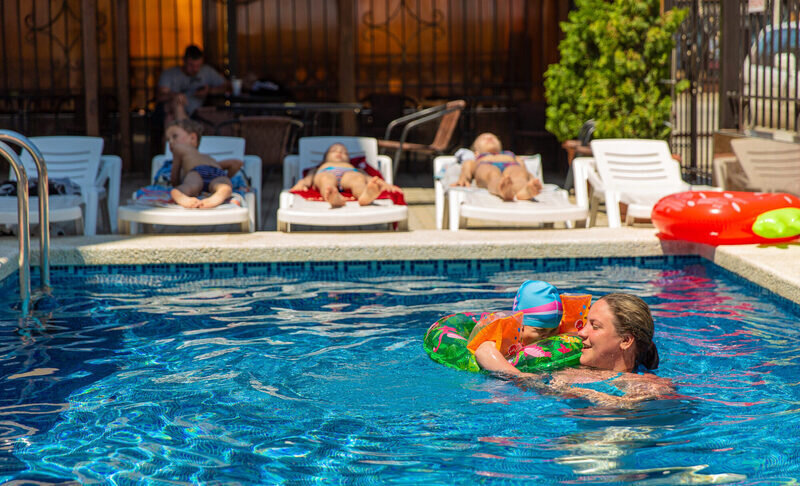 «Море-Море» — это современный отель с обустроенной зоной для водных процедур. Вход в бассейн доступен только гостям отеля.