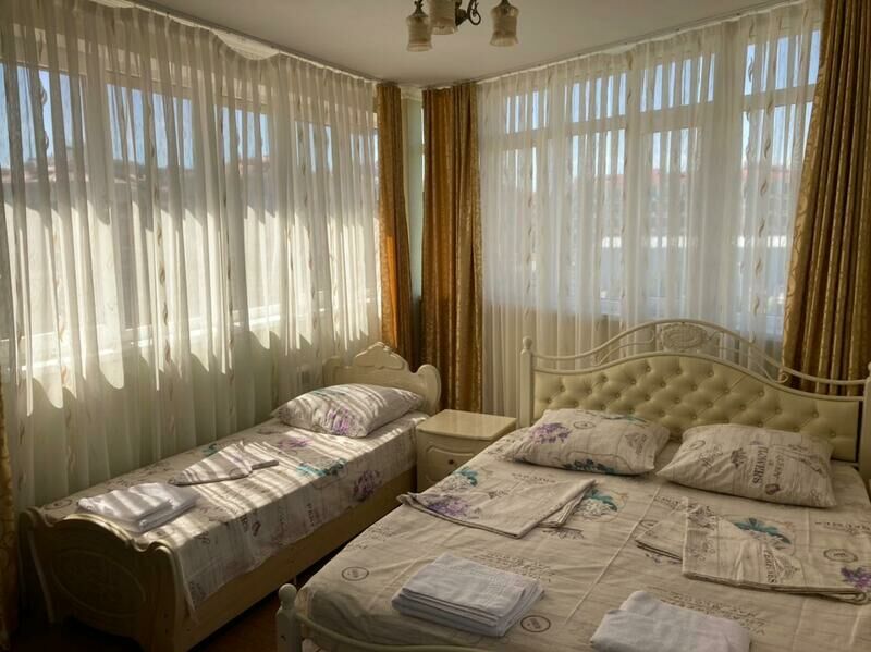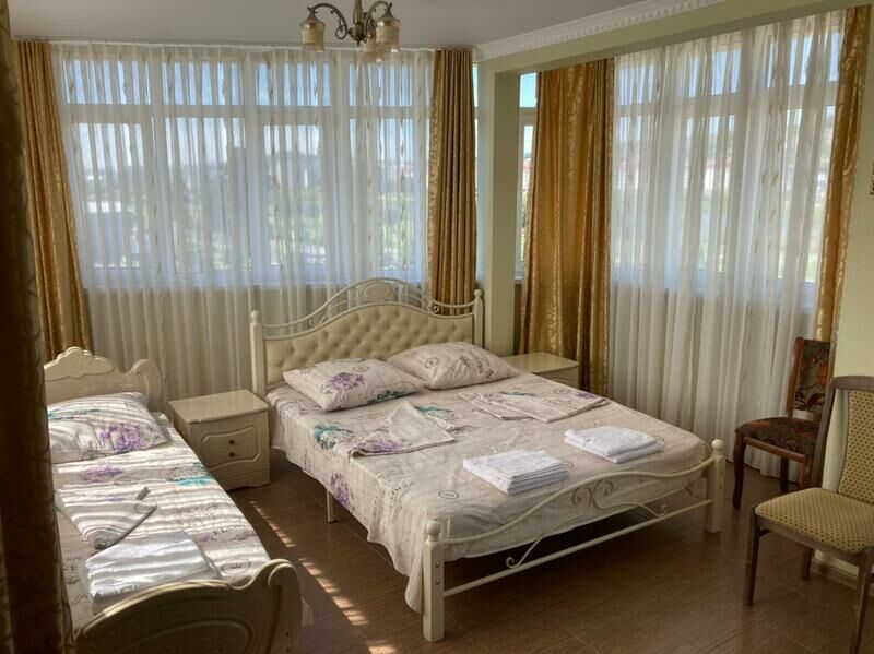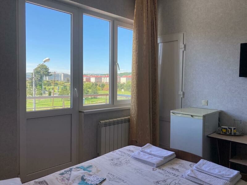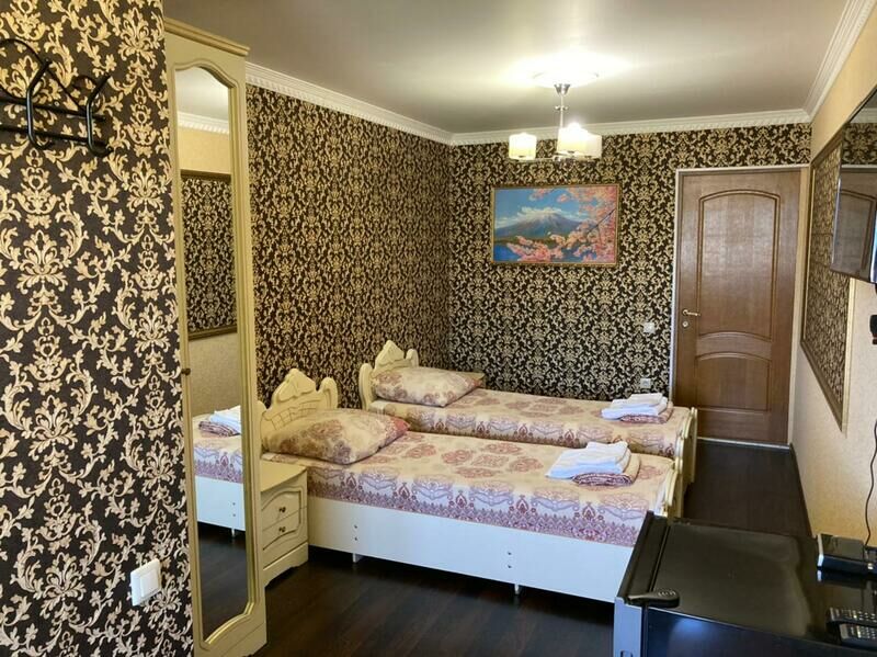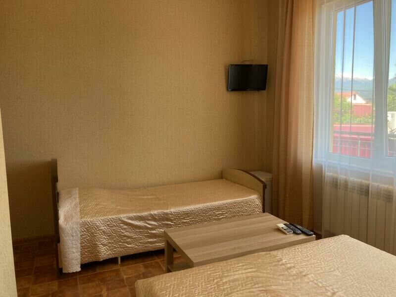 Пятиэтажный корпус отеля возвышается всего в 400 метрах от моря. Жилой фонд, способный единовременно вместить более 100 человек, предлагает гостям современные комфортабельные номера с классическим дизайном. Во всех номерах установлены кондиционеры, есть плазменный телевизор, фен, мини-холодильник. В ванных комнатах для отдыхающих подготовлены косметические наборы.